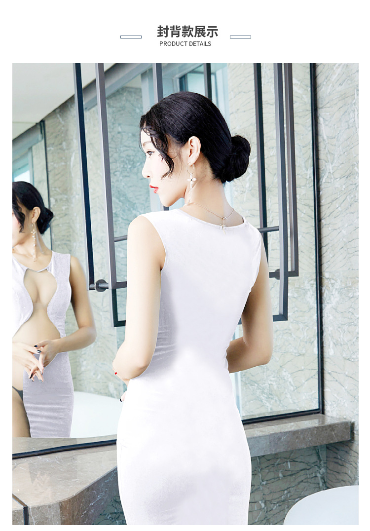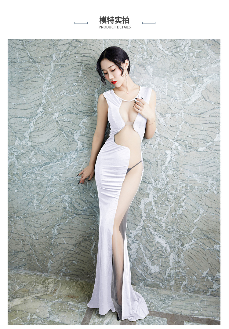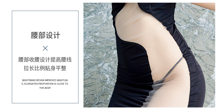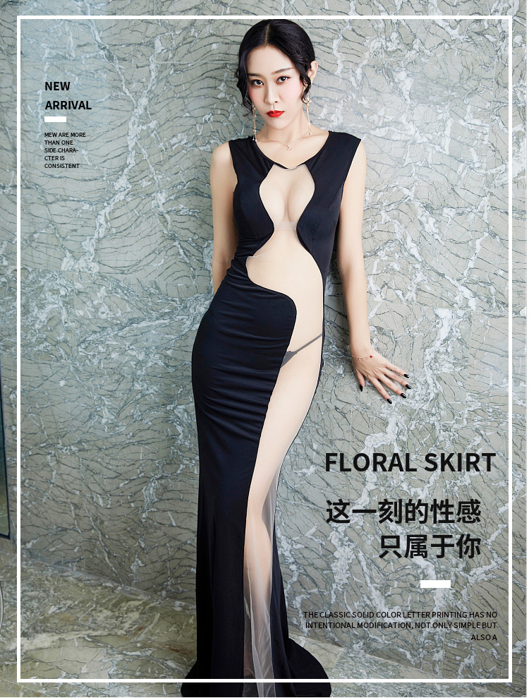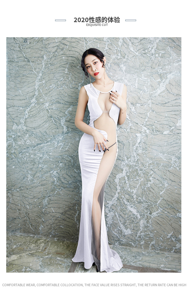 나이트 클럽 섹시한 관점 긴 메쉬 로우 컷 원피스 기질 슬리밍 중공 분할 긴 원피스 바 작은 검은 원피스스토어 가기