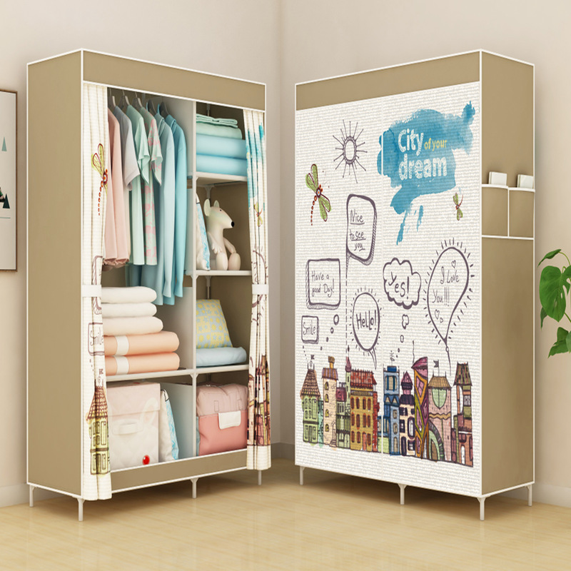 설치 가능한 간단한 옷장 기숙사 조립 계층화 된 옷장 싱글 스몰 사이즈 렌탈룸 옷장 접이식 계층화 된 스토리지스토어 가기