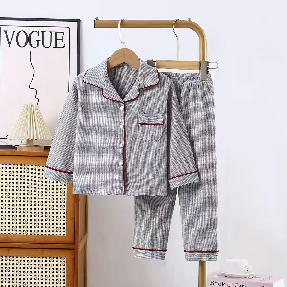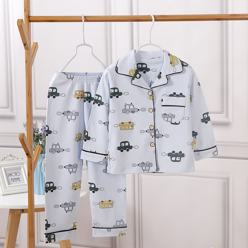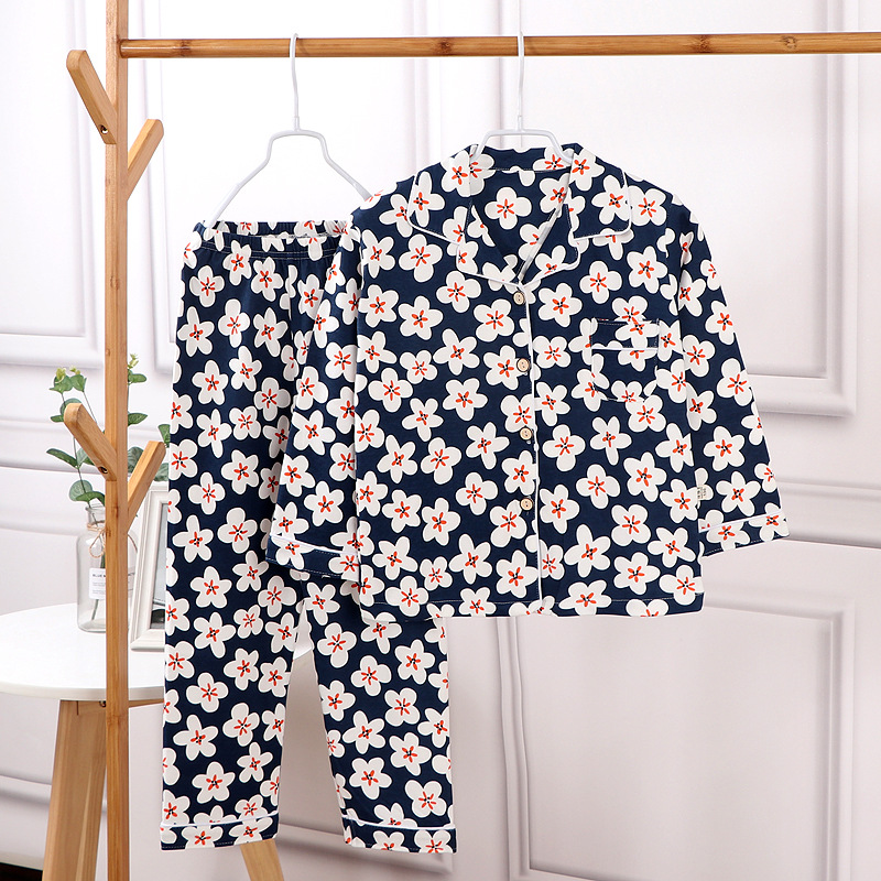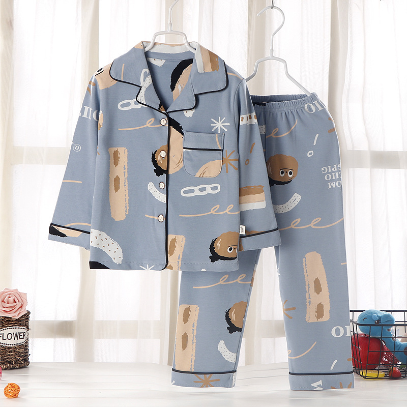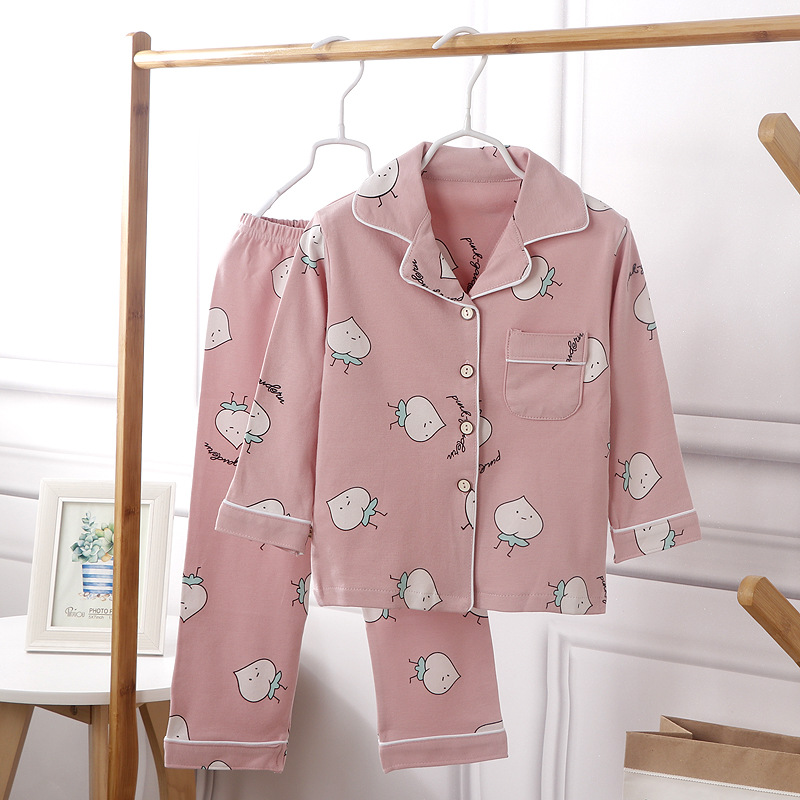 2025년 신상 아동용 순면 봄가을 홈웨어 중학생 잠옷 세트 큰아이용 투피스 캐주얼 세트스토어 가기