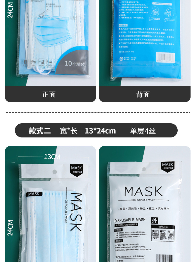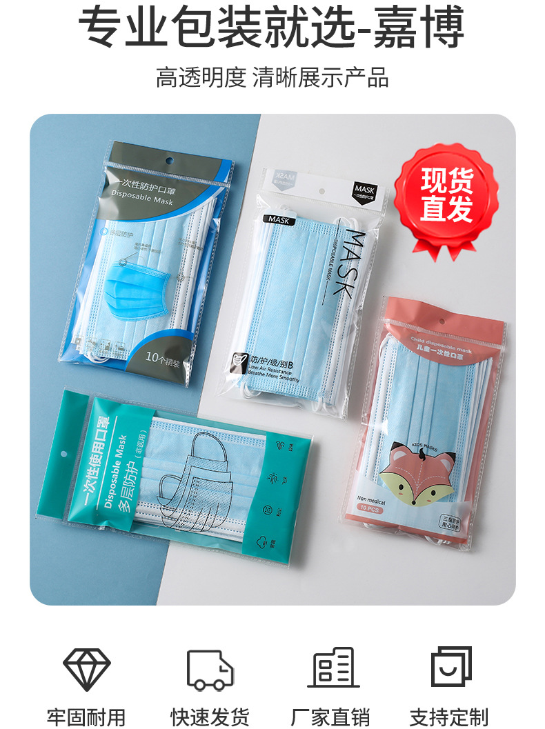 재고 유니버설 opp 성인 일회용 마스크 포장 가방 10 팩 어린이 마스크 플라스틱 지플롭 가방