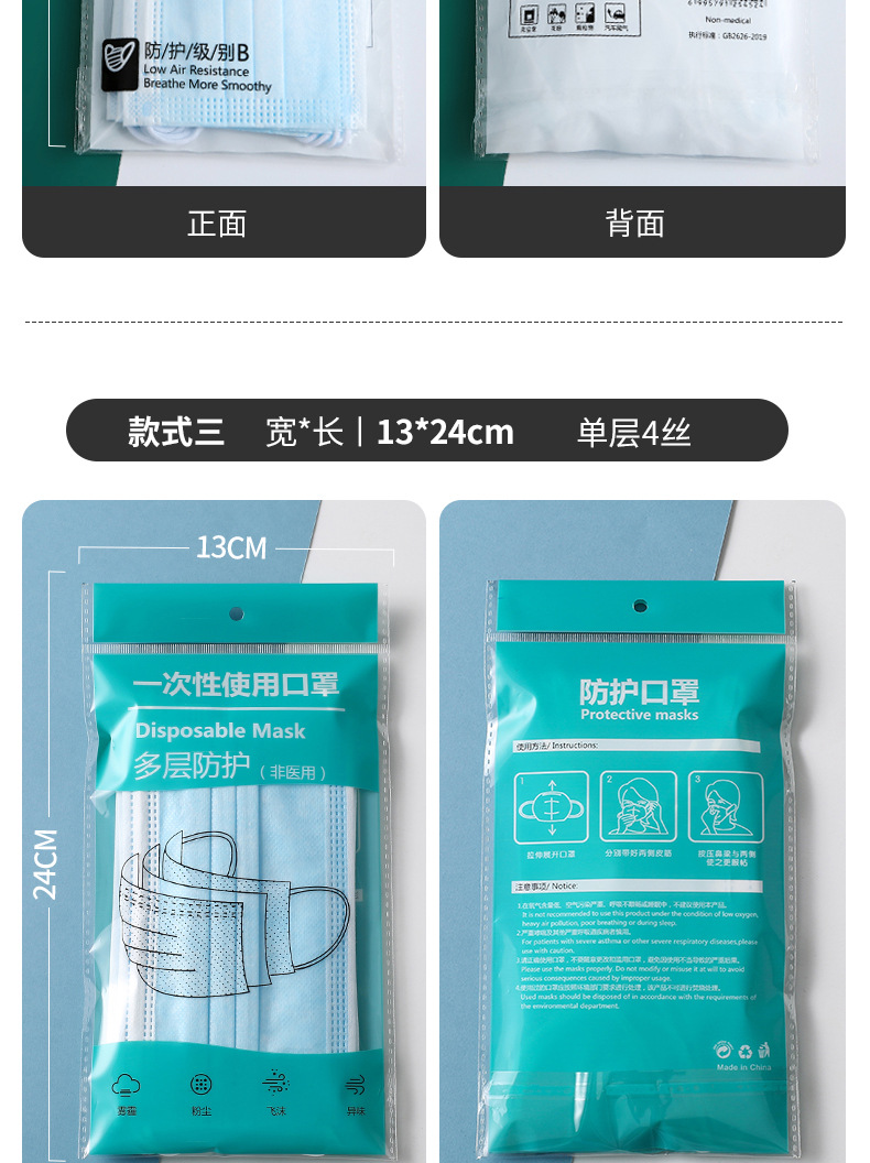 재고 유니버설 opp 성인 일회용 마스크 포장 가방 10 팩 어린이 마스크 플라스틱 지플롭 가방스토어 가기