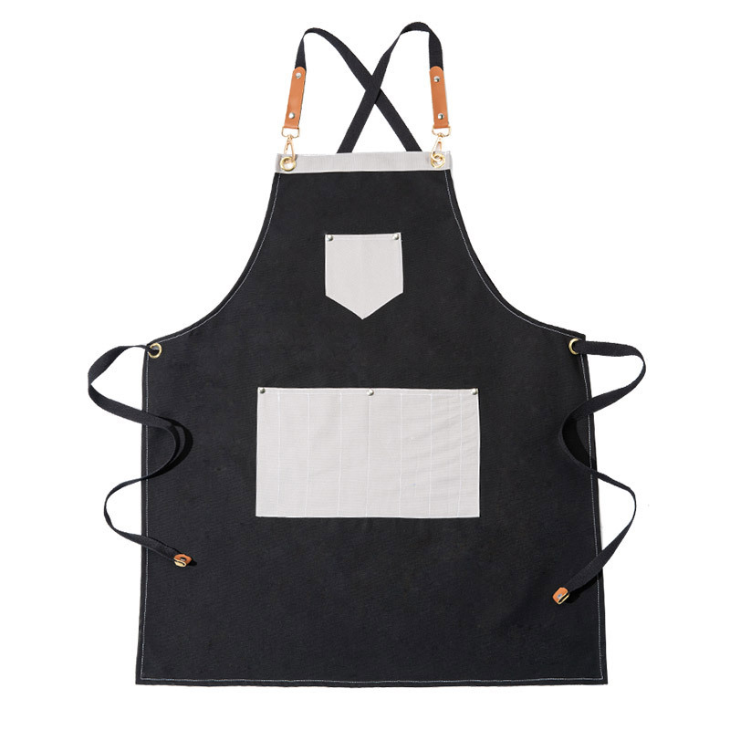 사용자 정의 로고 인쇄 한국 패션 작품 앞치마 만들기 남녀 그림 우유 차 가게 바리 스타 캔버스 앞치마