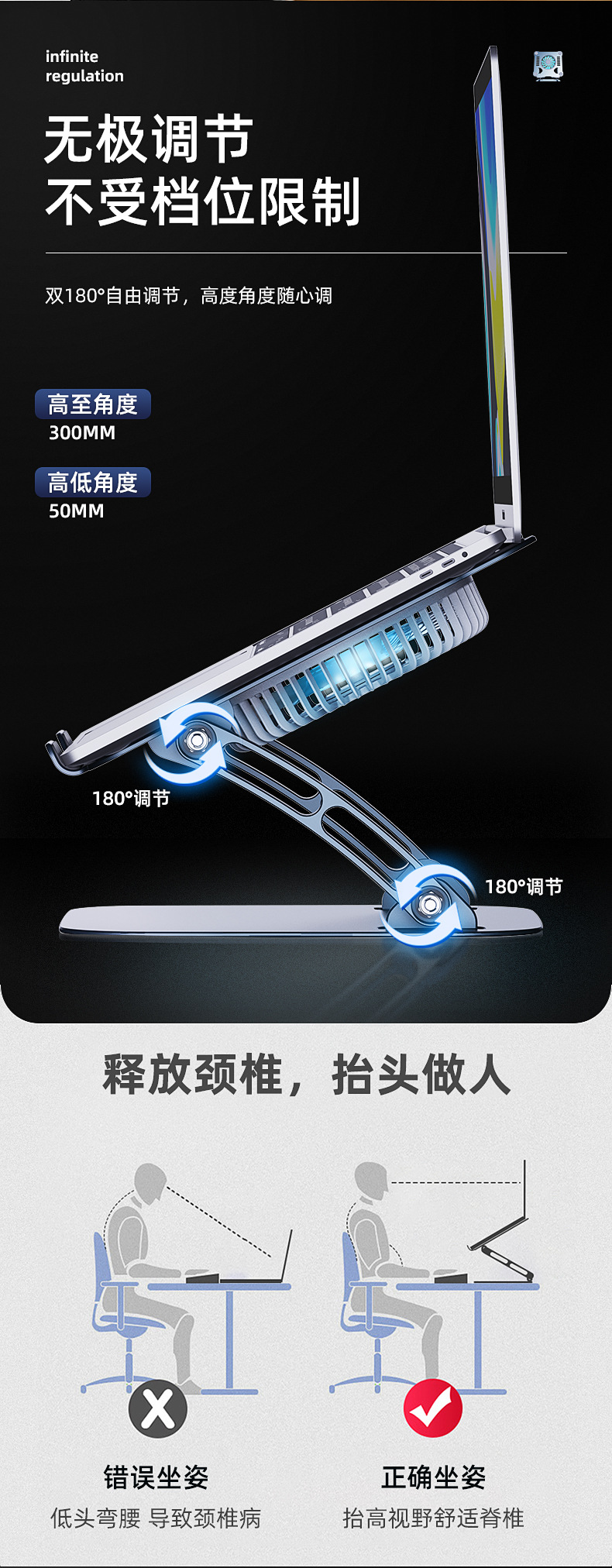 금속 접이식 이중 냉각 스탠드 데스크탑 노트북 컴퓨터 스탠드 태블릿 노트북 거치대 3