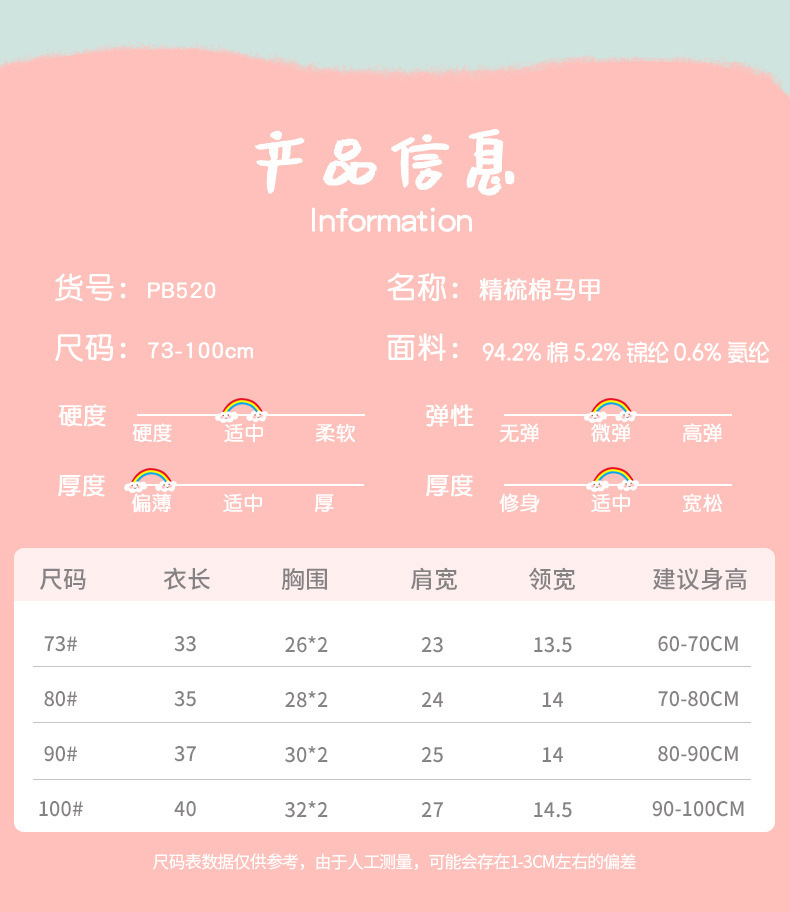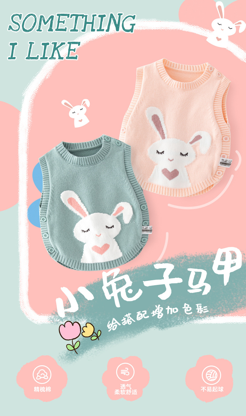 귀엽고 사랑스러운 순면 A급 니트 아기 조끼, 봄과 가을 따뜻한 아기 조끼, 부드러운 신생아 조끼