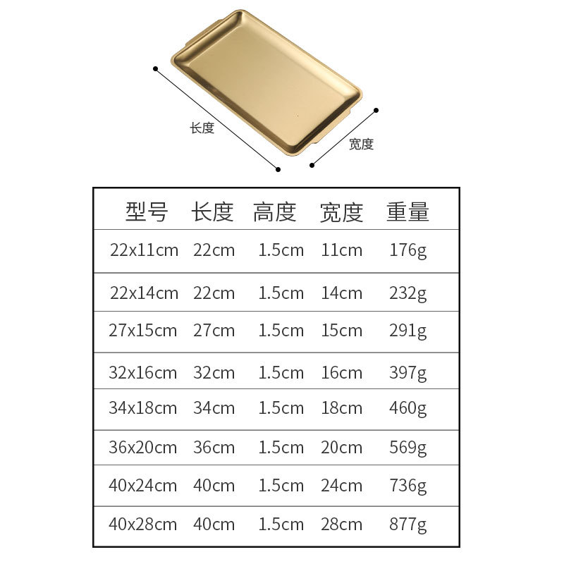 한국 스타일 304 스테인레스 스틸 직사각형 플레이트 두꺼운 황금 바베큐 플레이트 접시 초밥 플레이트 플랫 바닥 트레이 저장 플레이트