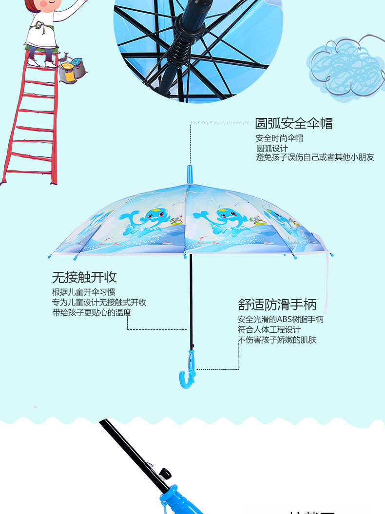 새로운 만화 어린이 우산 혼합 색상 에바 우산 표면 인쇄 가능 로고 페인트 우산 스탠드 어린이 야외 우산스토어 가기