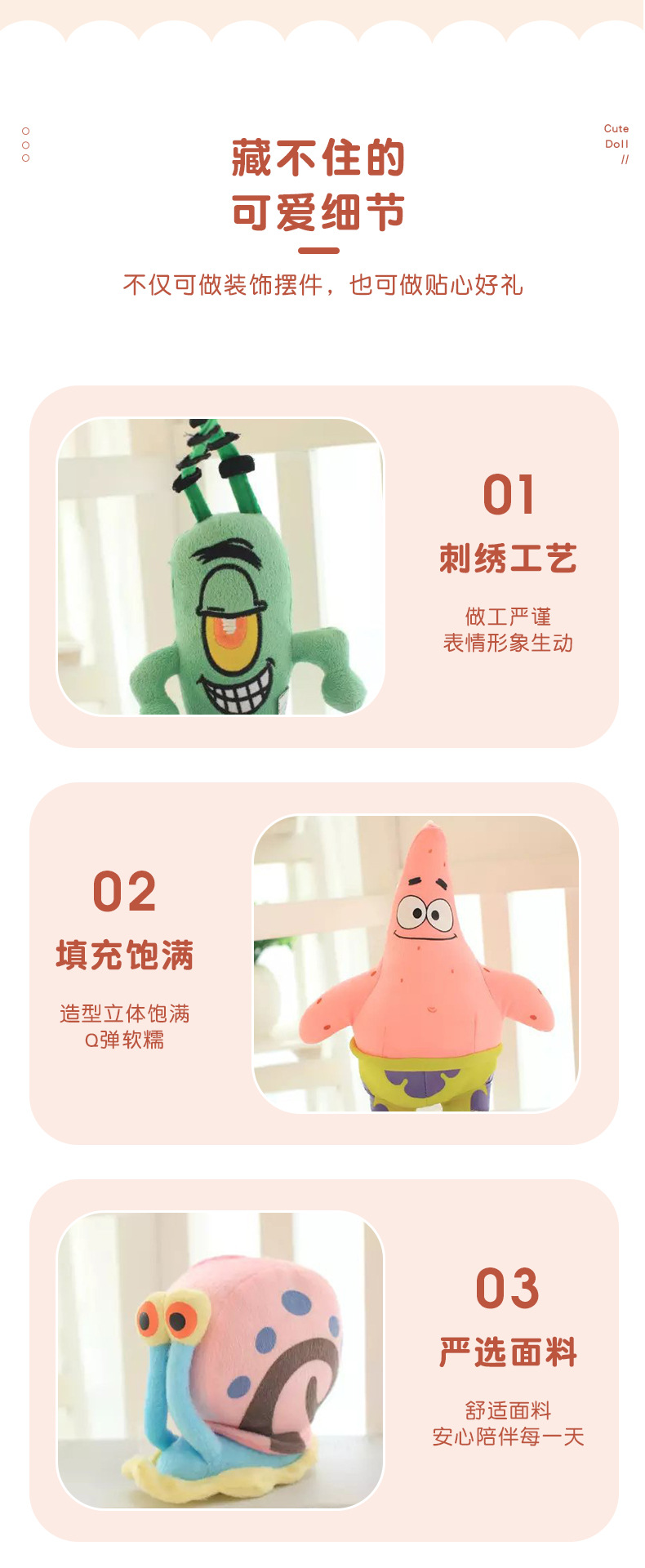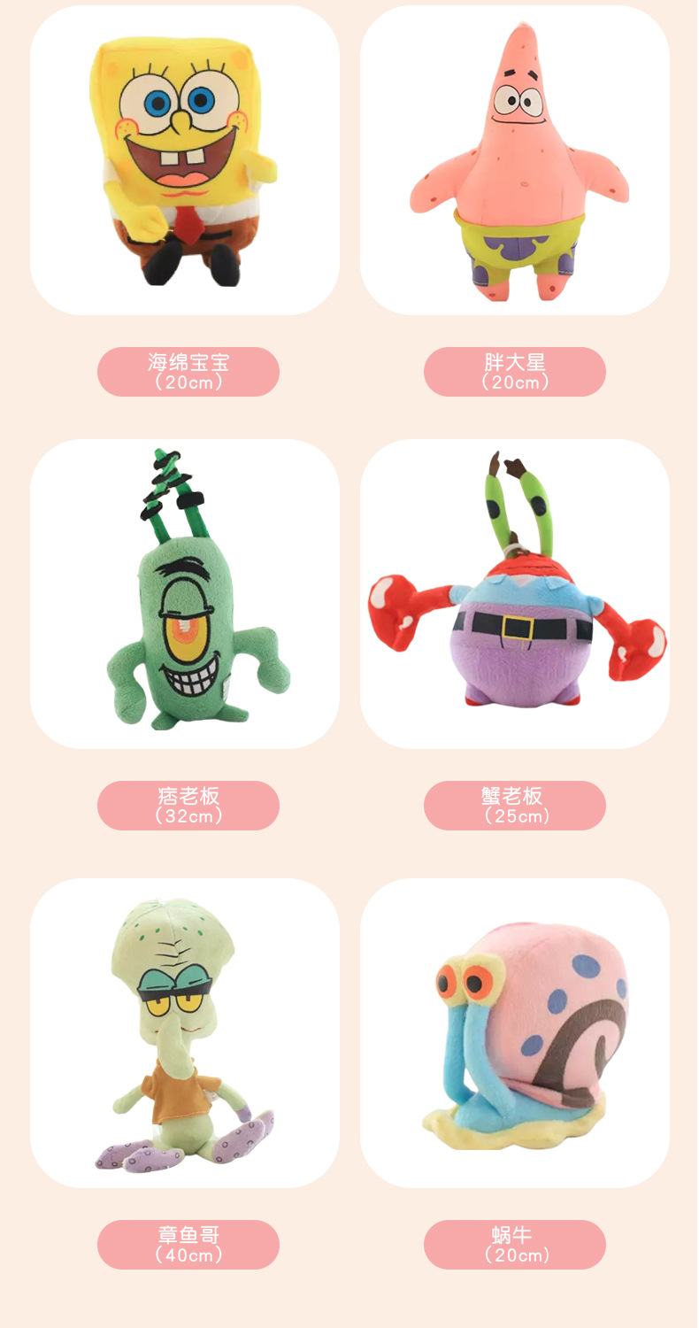 만화 봉제 장난감 스폰지 밥 시리즈 세트 오징어 게 보스 파이 다 싱 달팽이 빨판 인형 펜던트스토어 가기