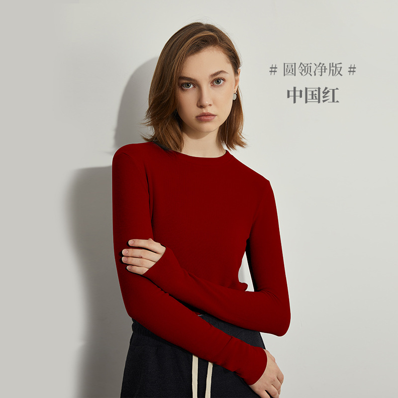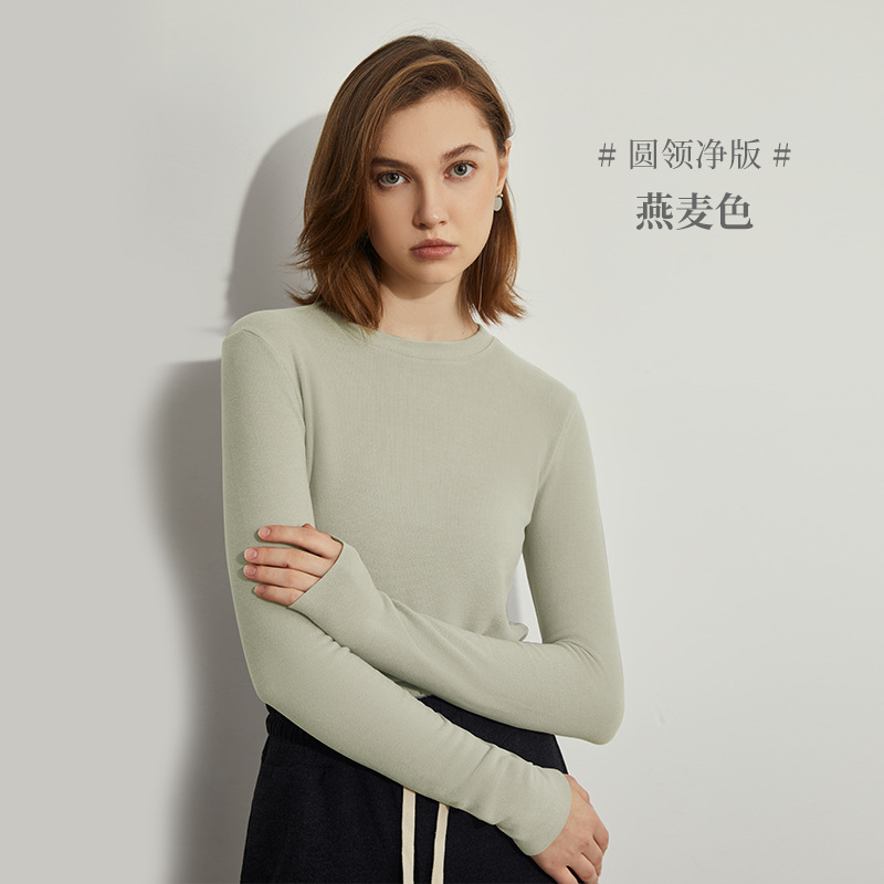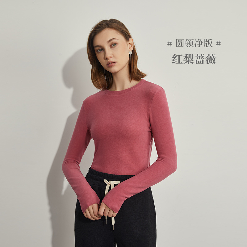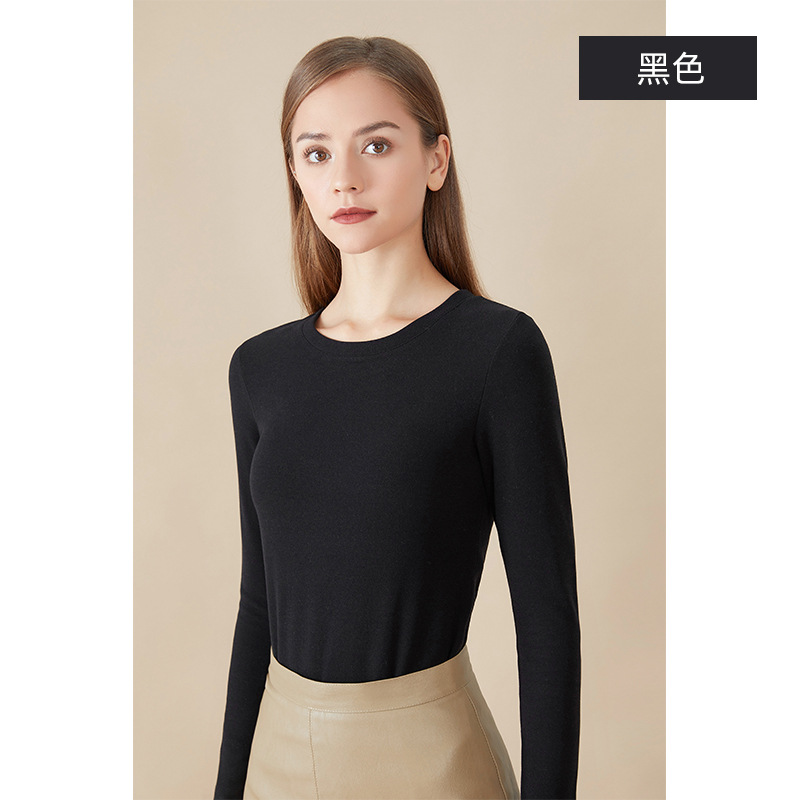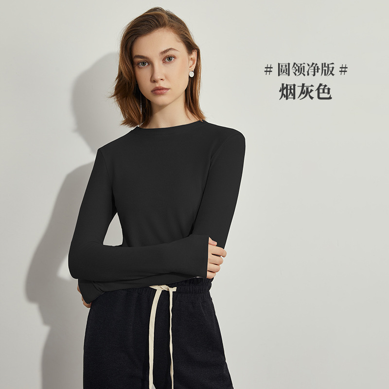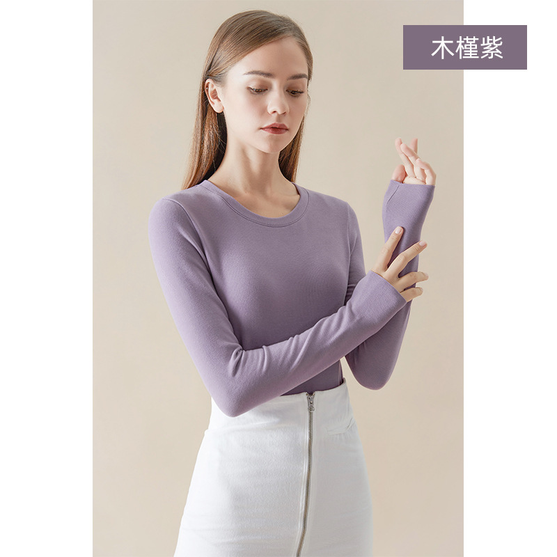 가을과 겨울 새로운 여성용 벨벳 히알루 론산 열 크루넥 긴 소매 따뜻한 베이스 셔츠 여성용 겉옷 티셔츠
