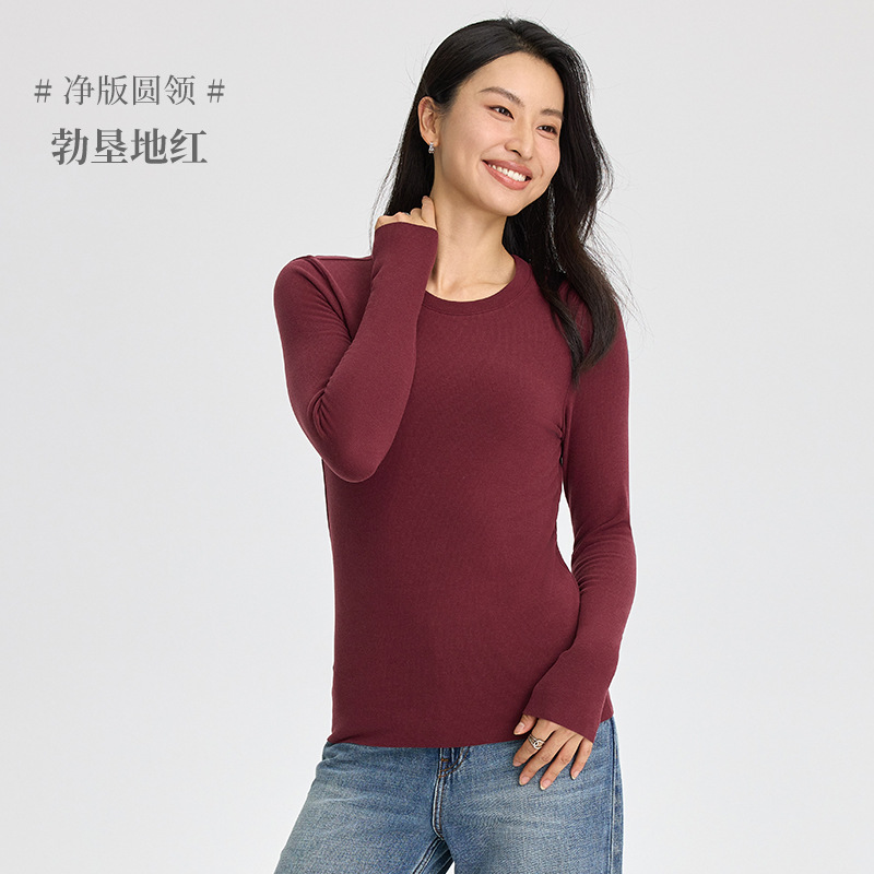 가을과 겨울 새로운 여성용 벨벳 히알루 론산 열 크루넥 긴 소매 따뜻한 베이스 셔츠 여성용 겉옷 티셔츠스토어 가기