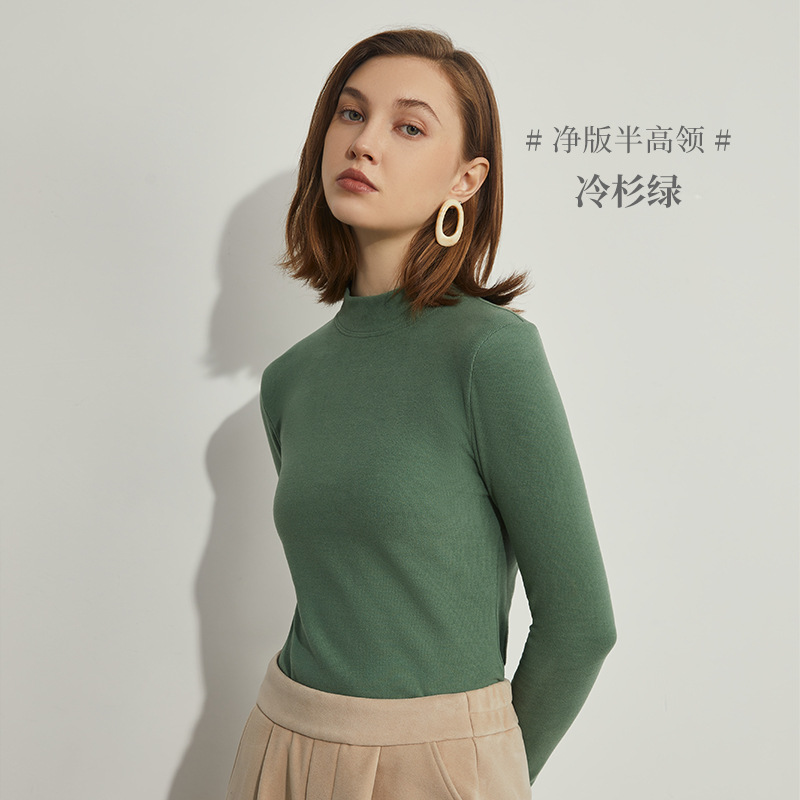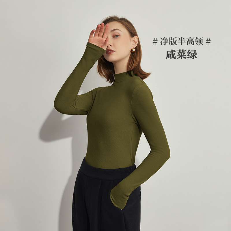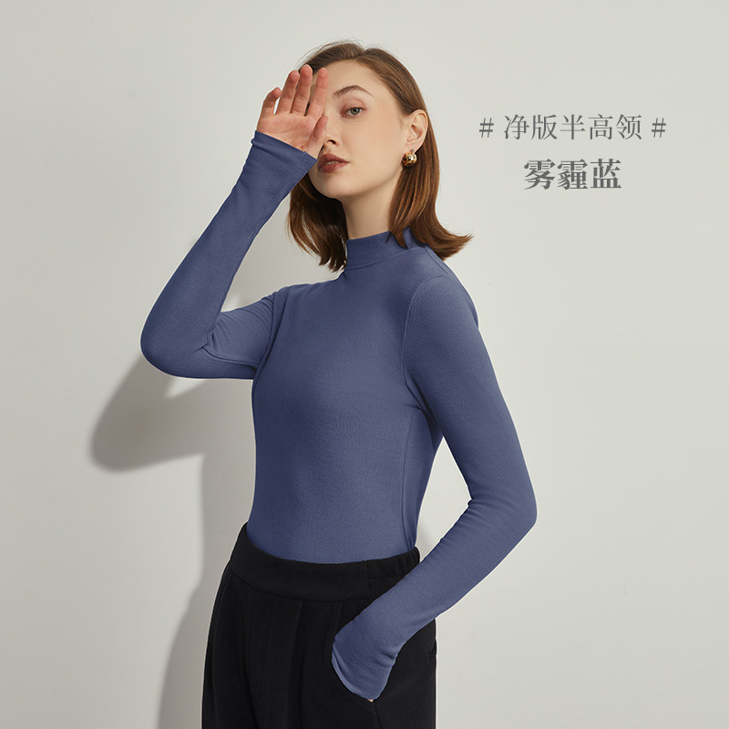 여성 독일 벨벳 히알루 론산 열 피부 미용 의류 2024 가을, 겨울 새로운 하프 터틀넥 따뜻한 바닥 셔츠 긴팔 티셔츠