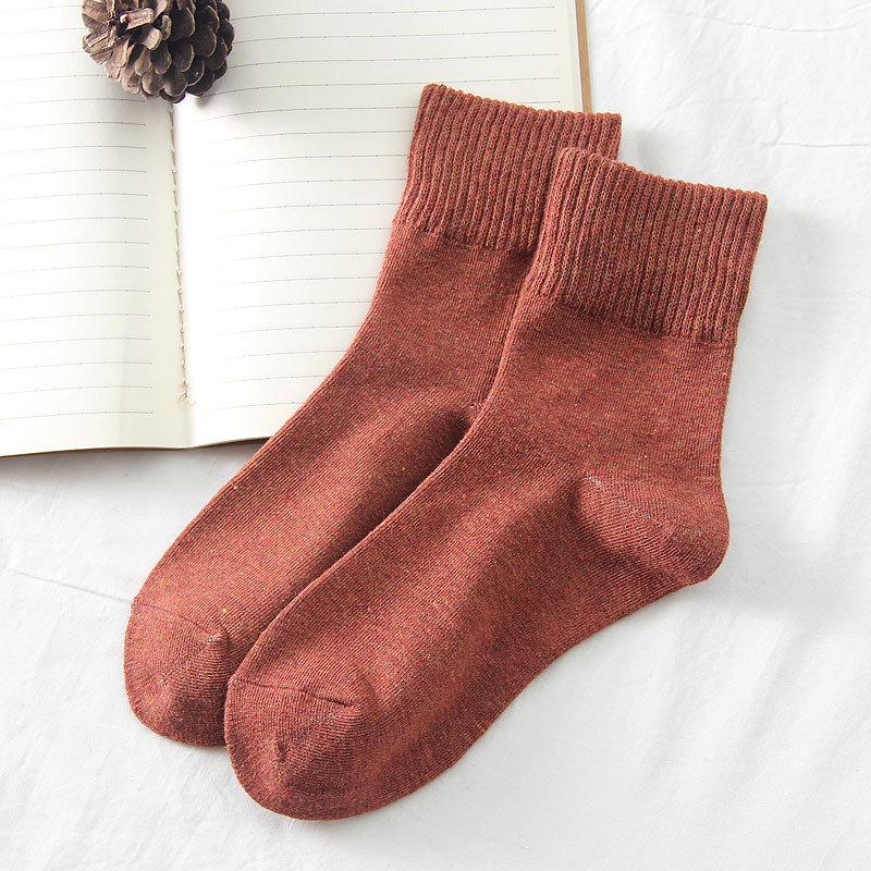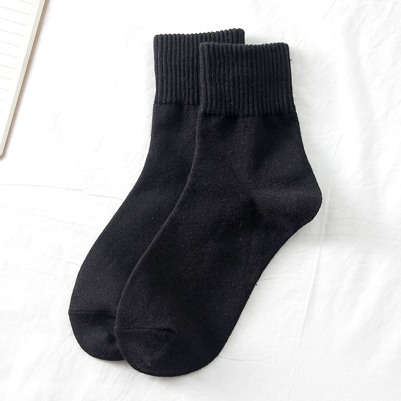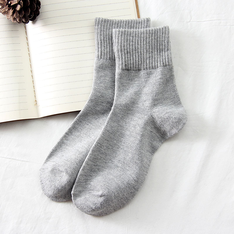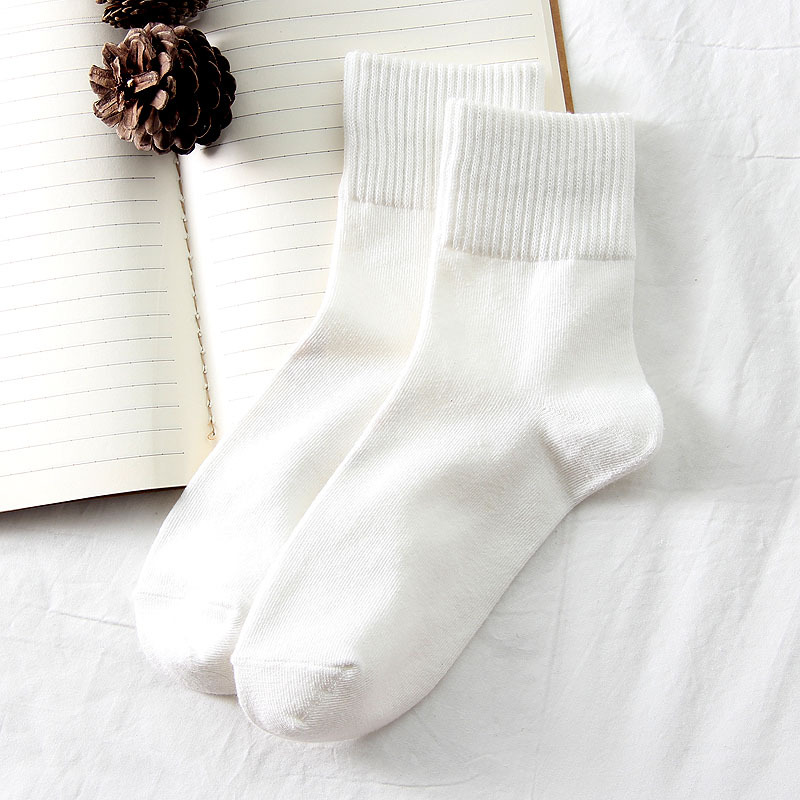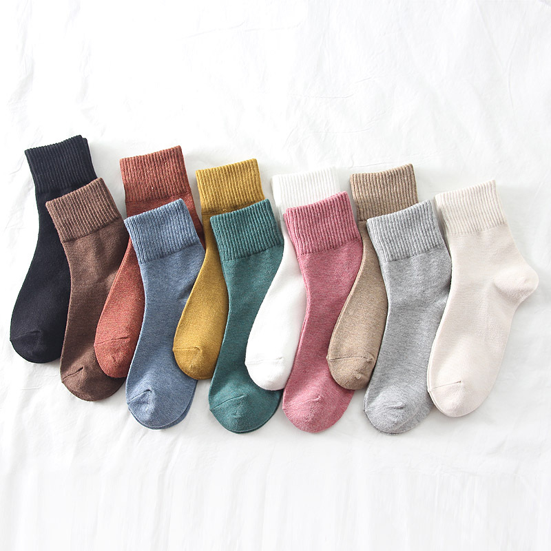 중간 종아리 길이 양말 여성 양말 여성 가을 및 겨울 단색 면화 양말 일본 높은 탄성 갈비뼈 입 새로운 여성 양말 도매스토어 가기