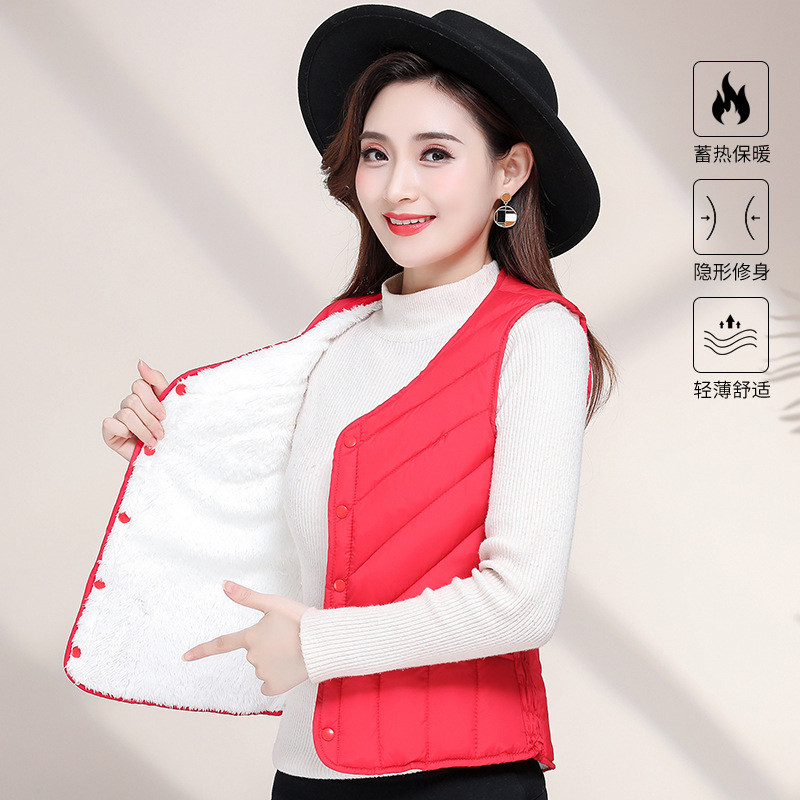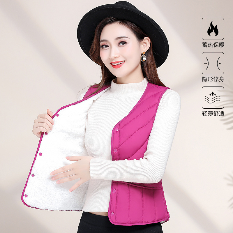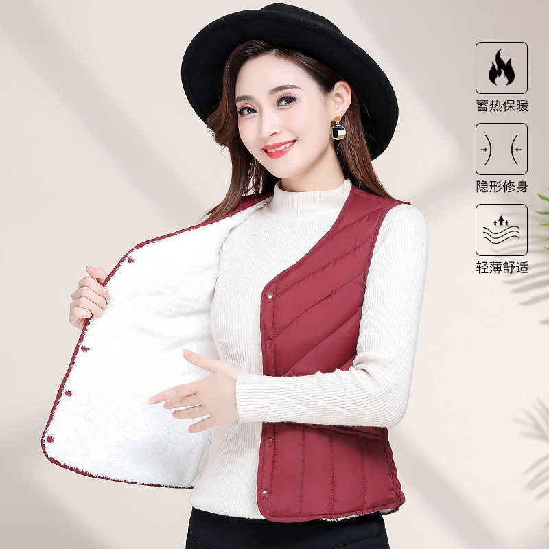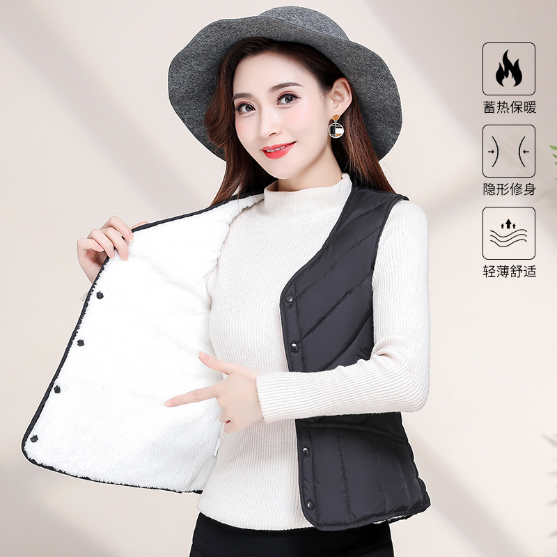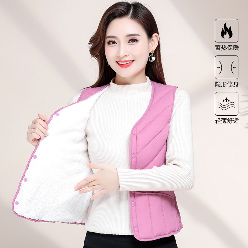 가을과 겨울 기모 다운 코튼 조끼 여성용 2023 새로운 두꺼운 밀착 조끼 짧은 따뜻한 내부 착용 양복 조끼 라이너스토어 가기
