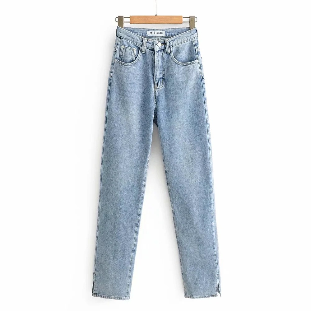 유럽과 미국 팬 숙녀 청바지 2020 가을 폭발적인 하이 웨이스트 사이드 스플릿 바닥 슬리밍 스트레이트 팬츠스토어 가기