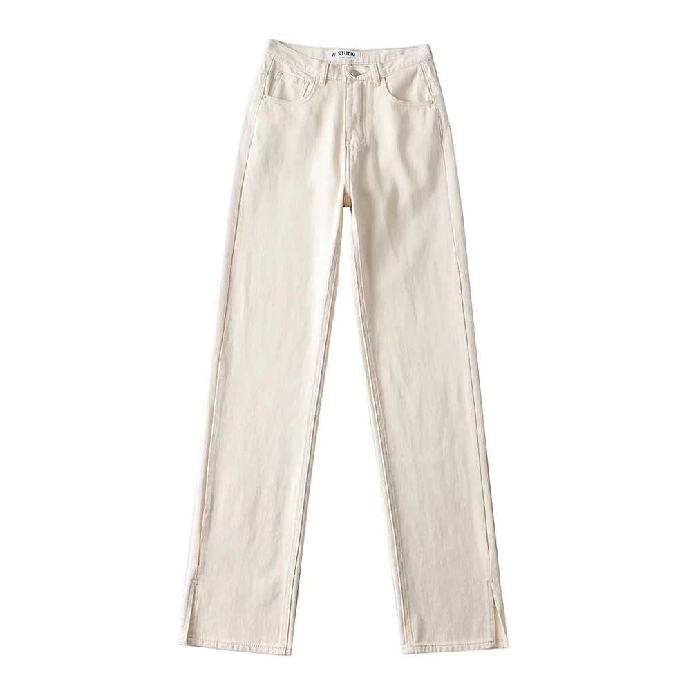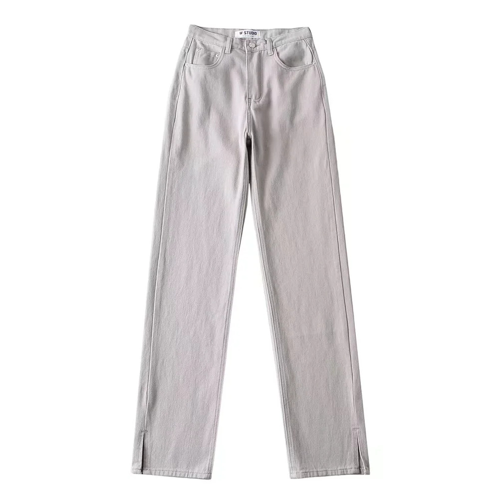 유럽과 미국 팬 숙녀 청바지 2020 가을 폭발적인 하이 웨이스트 사이드 스플릿 바닥 슬리밍 스트레이트 팬츠