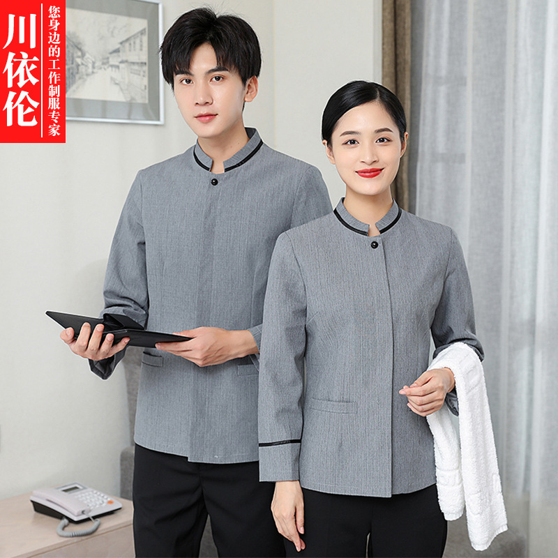 호텔 룸 취사 승무원 청소 작업복 긴 소매 가을과 겨울 옷 속성 PA 클리너 아줌마 작업복 여성