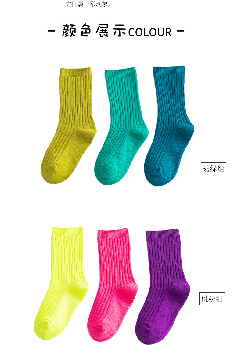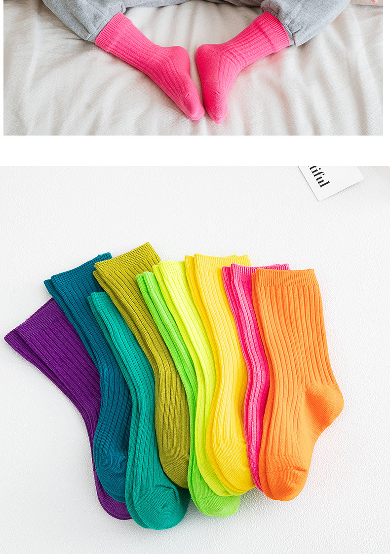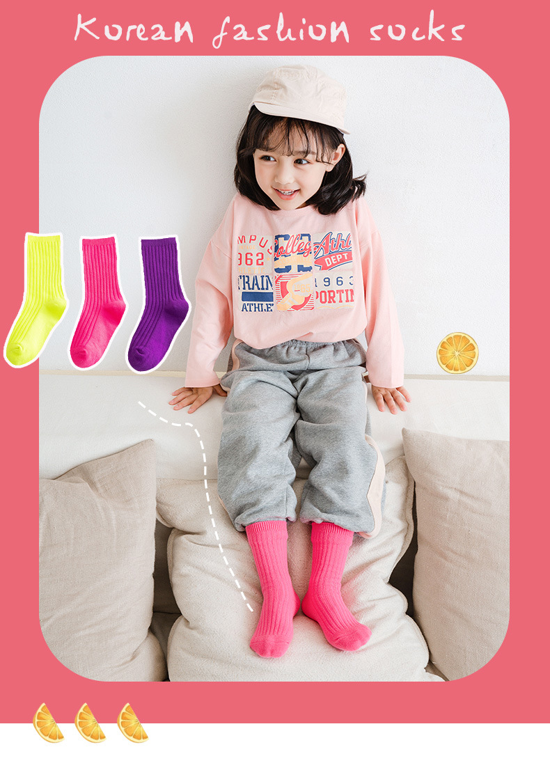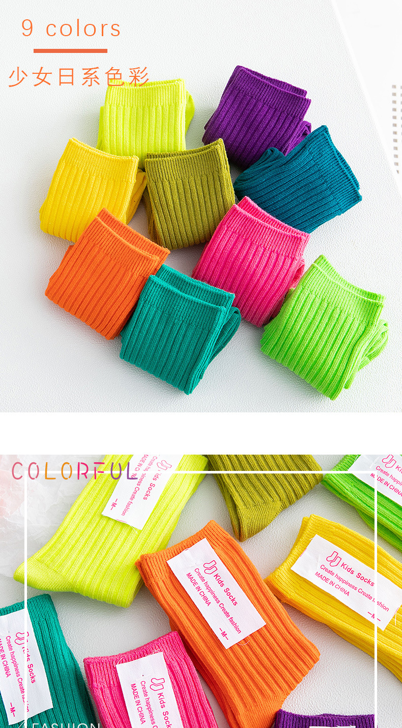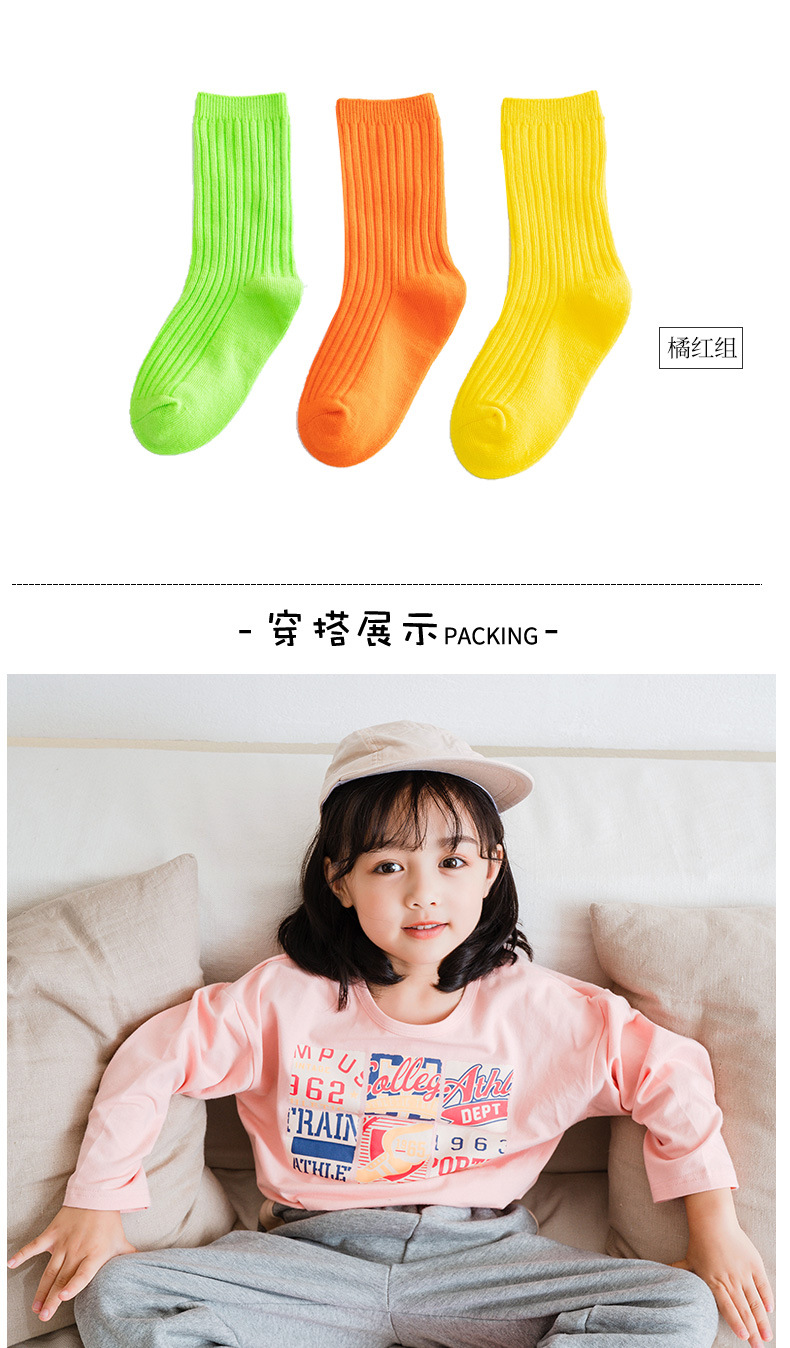 봄과 여름 빗질면 어린이 쌓인 양말 Zhuji 단색 아기 양말 형광색 중간 양말 소년과 소녀 양말스토어 가기