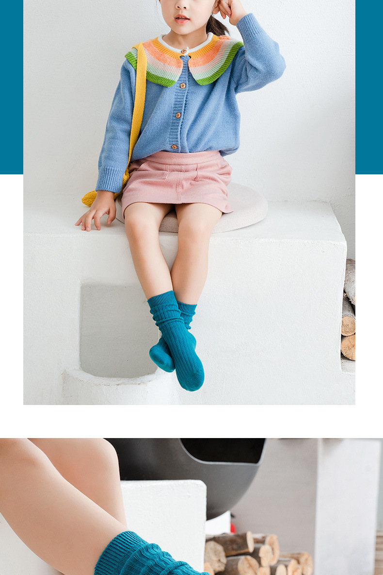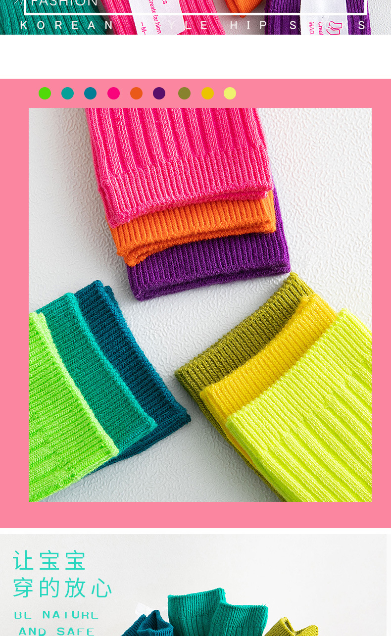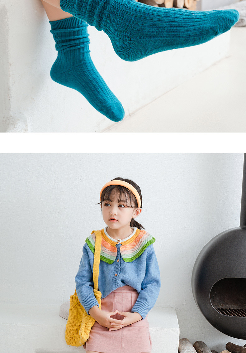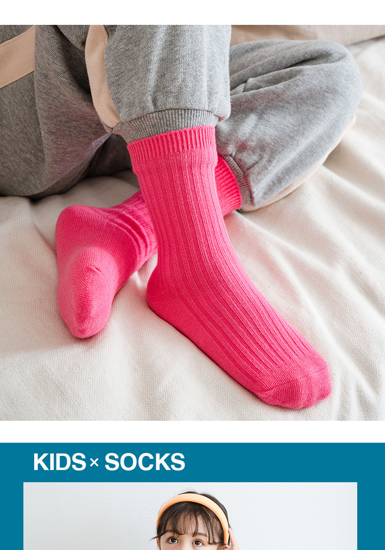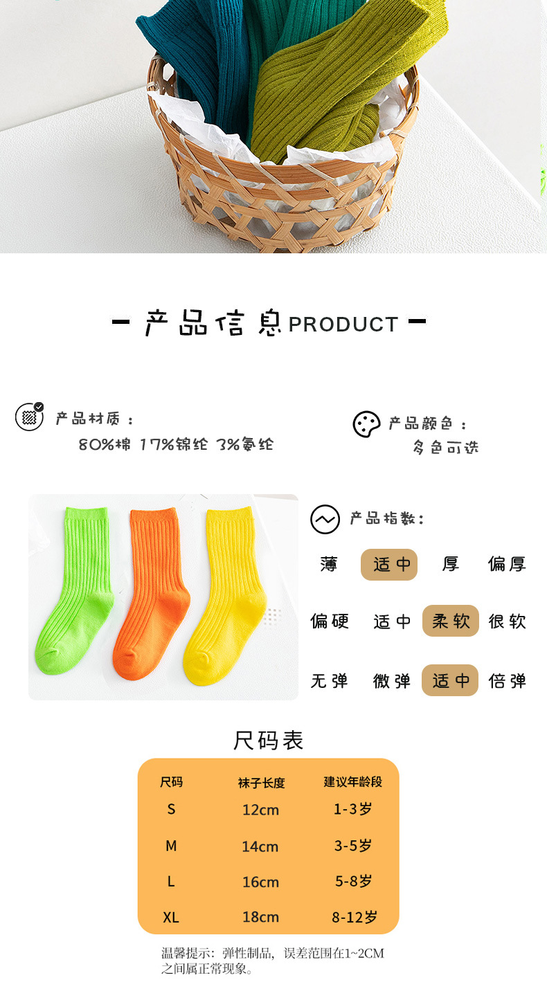 봄과 여름 빗질면 어린이 쌓인 양말 Zhuji 단색 아기 양말 형광색 중간 양말 소년과 소녀 양말스토어 가기