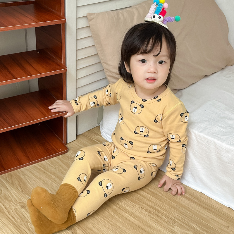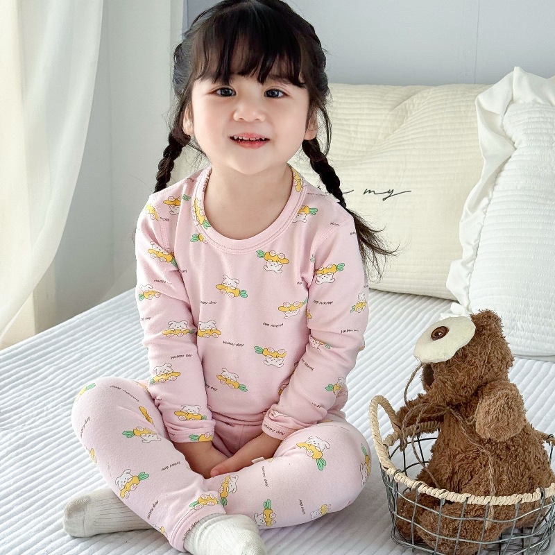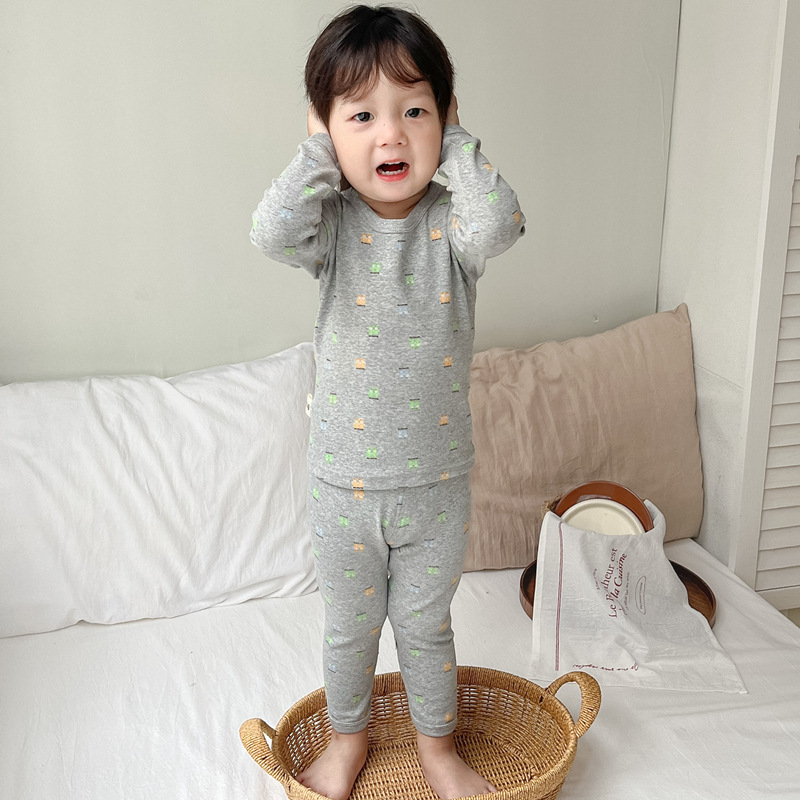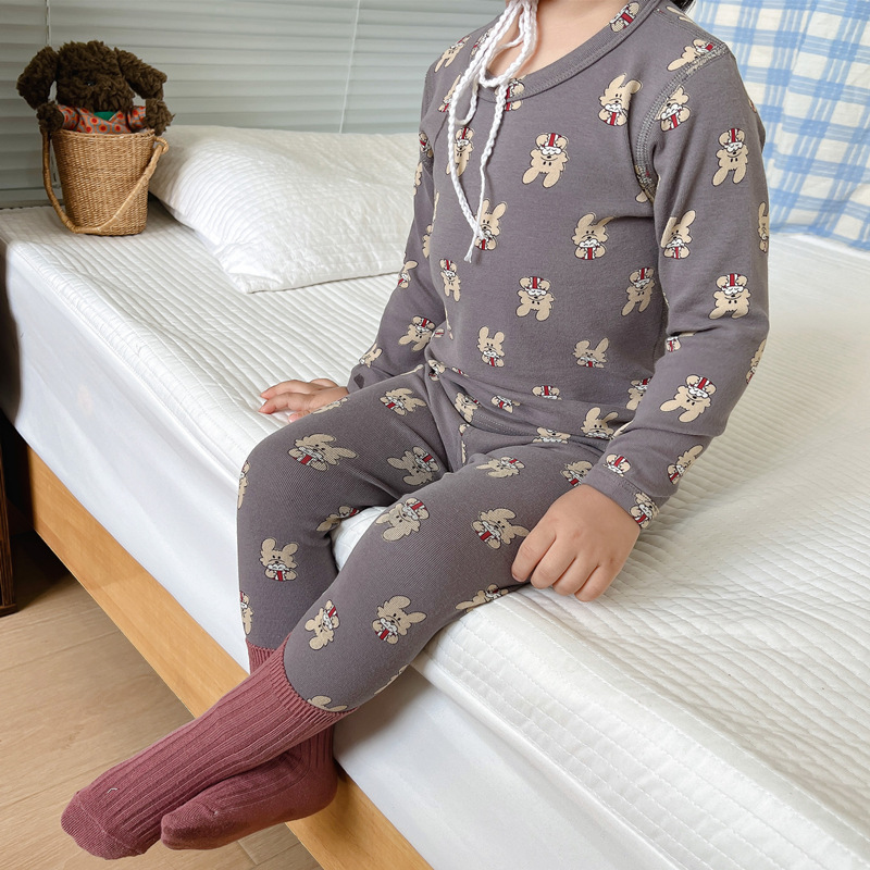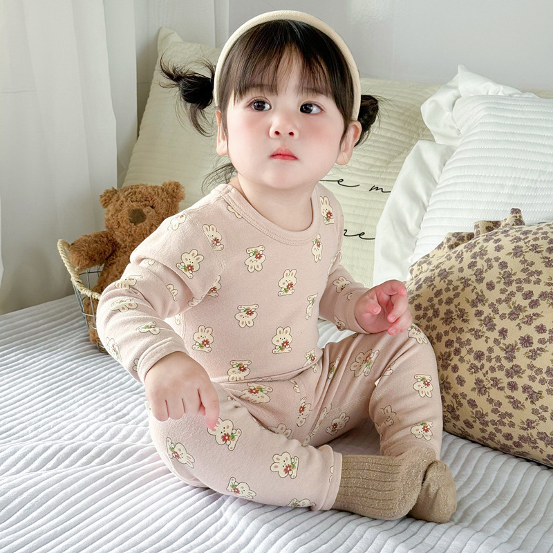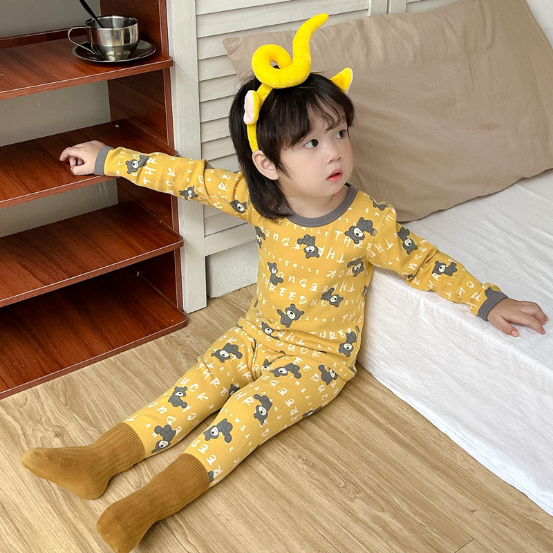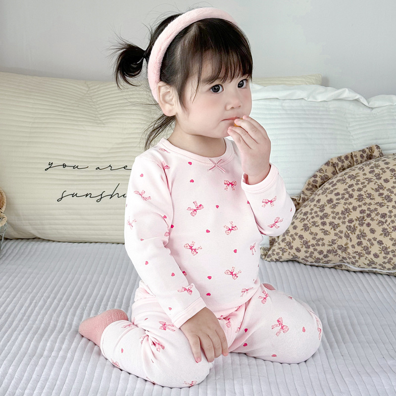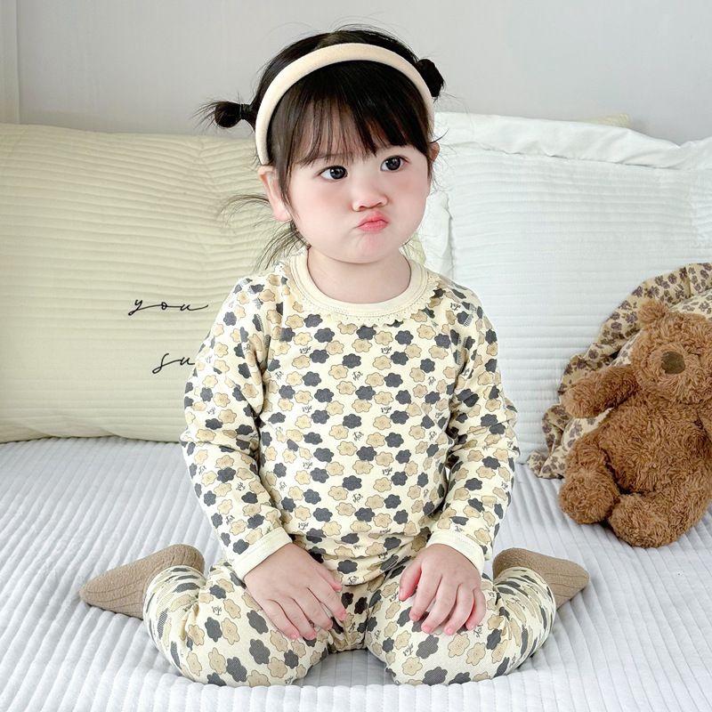 가을과 겨울 세트 어린이 뼈없는 가을 옷과 바지 따뜻한 아기 속옷 두꺼운 한국 스타일 소년 소녀를위한면