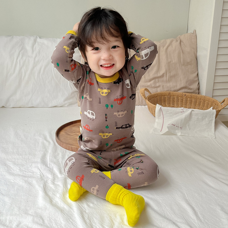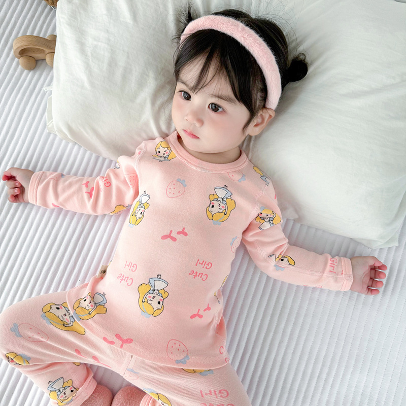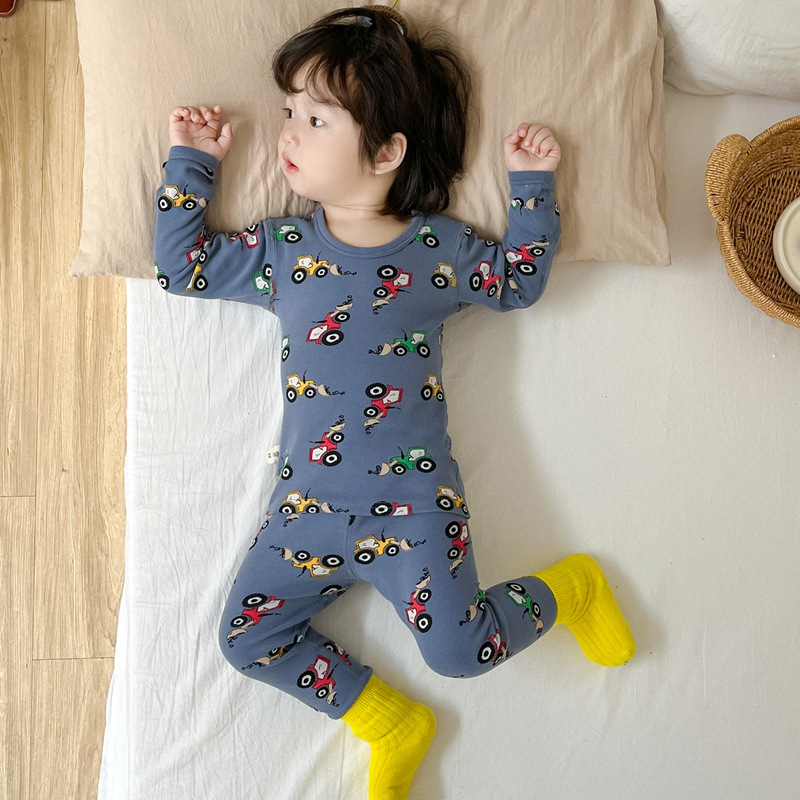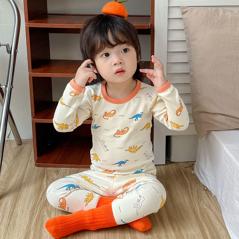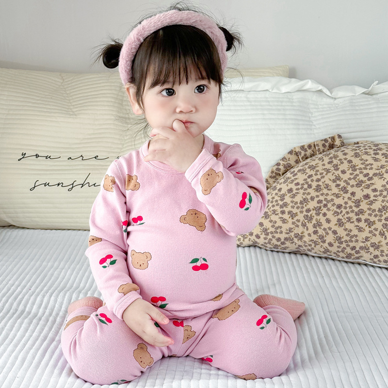 가을과 겨울 세트 어린이 뼈없는 가을 옷과 바지 따뜻한 아기 속옷 두꺼운 한국 스타일 소년 소녀를위한면스토어 가기