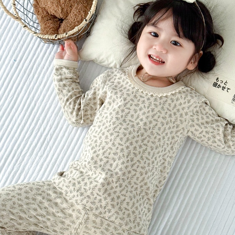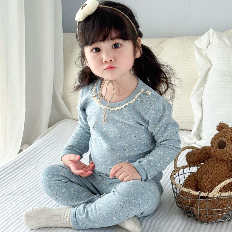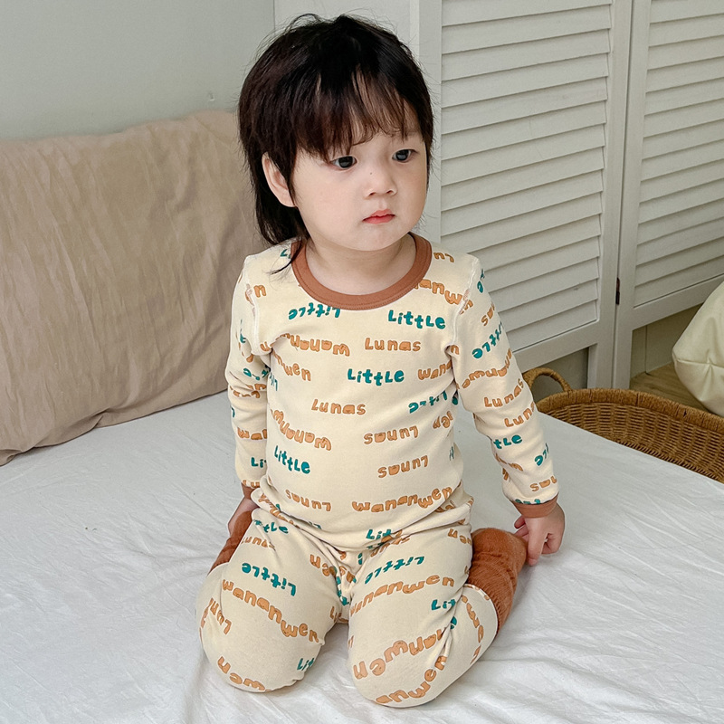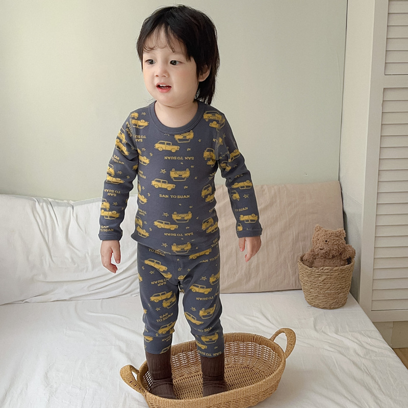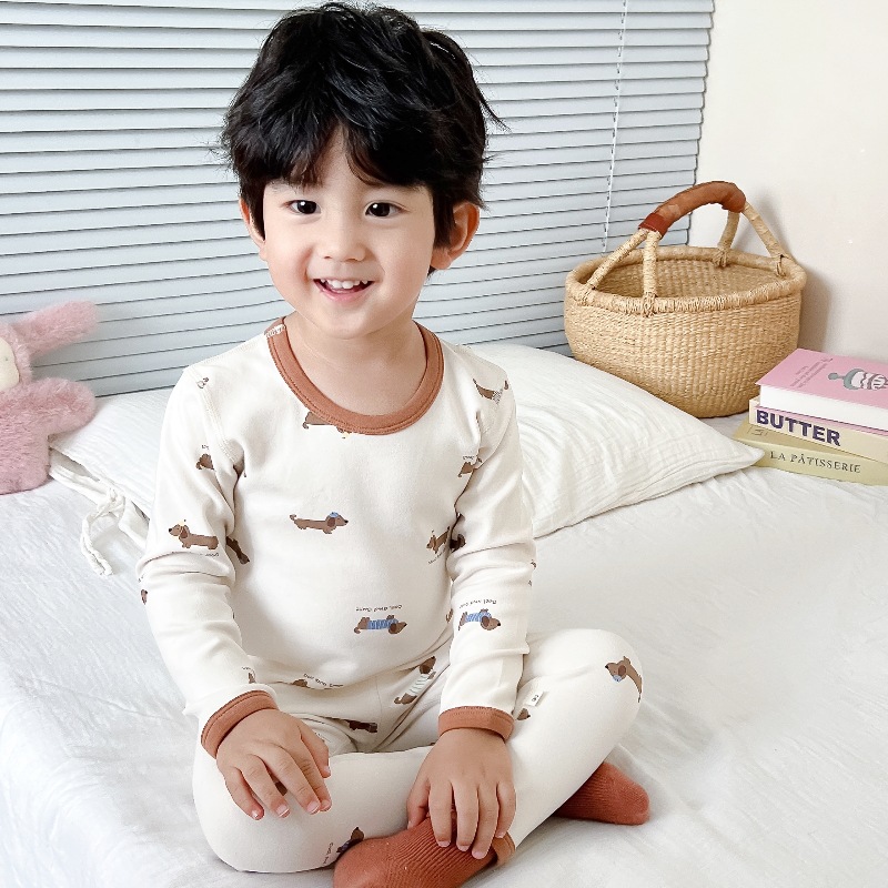 가을과 겨울 세트 어린이 뼈없는 가을 옷과 바지 따뜻한 아기 속옷 두꺼운 한국 스타일 소년 소녀를위한면스토어 가기