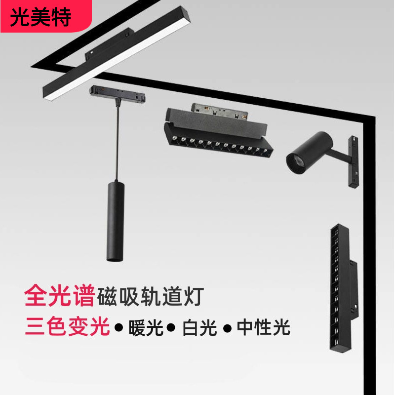 LED磁吸轨道灯全光谱射灯嵌入式家用客厅无主灯预埋led磁性轨道灯