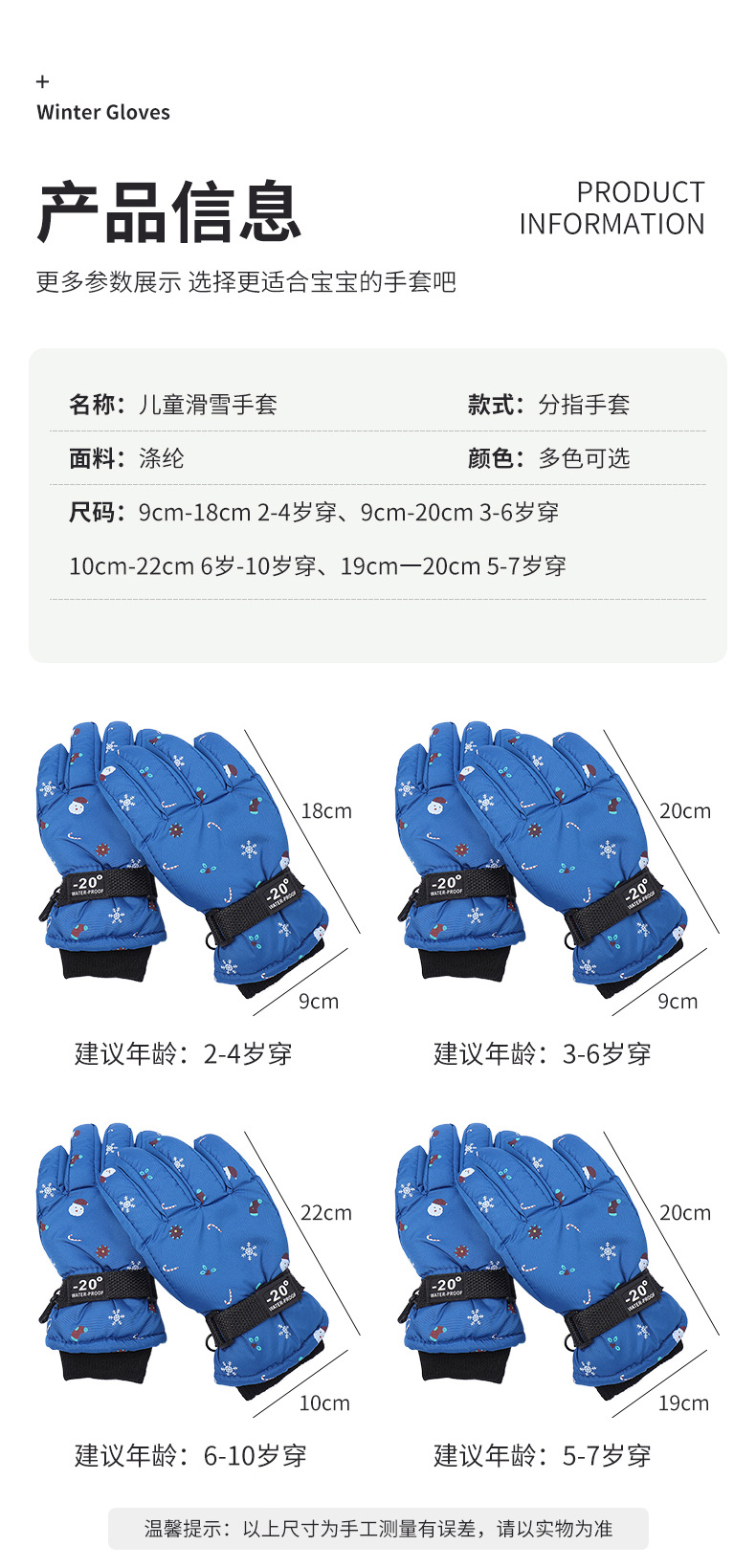 어린이 스키 장갑 야외 스포츠 장갑 기모 두꺼운 손가락 장갑 따뜻한 장갑 사이클링 방풍 장갑