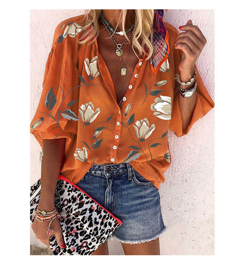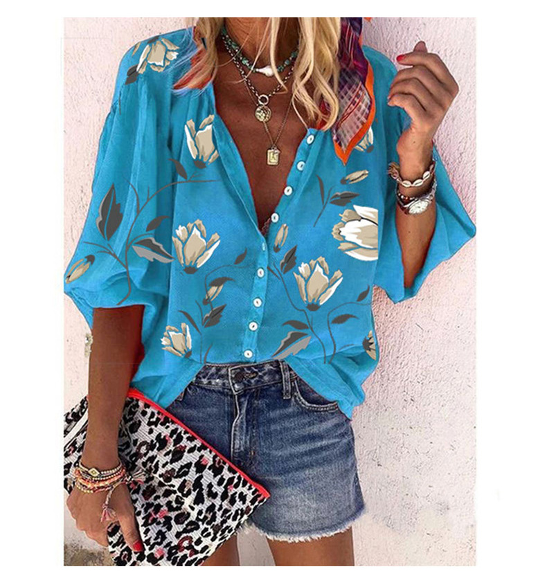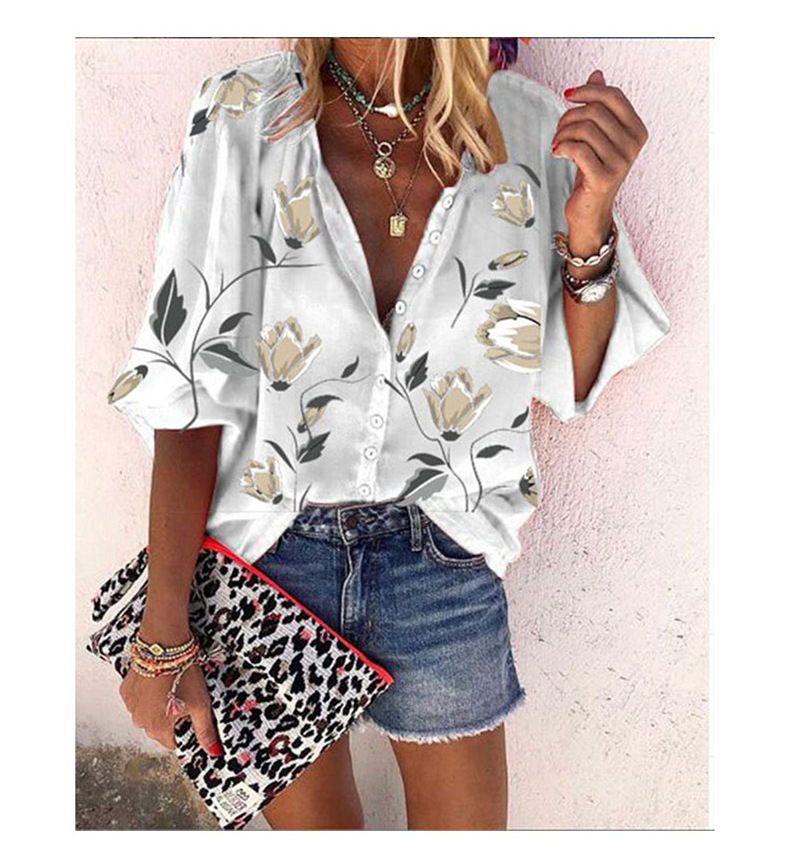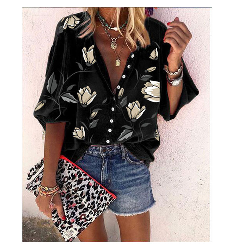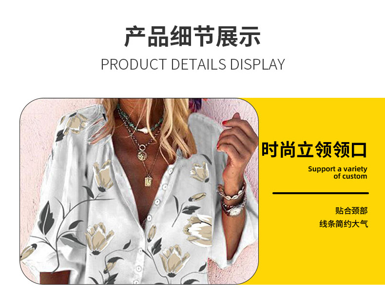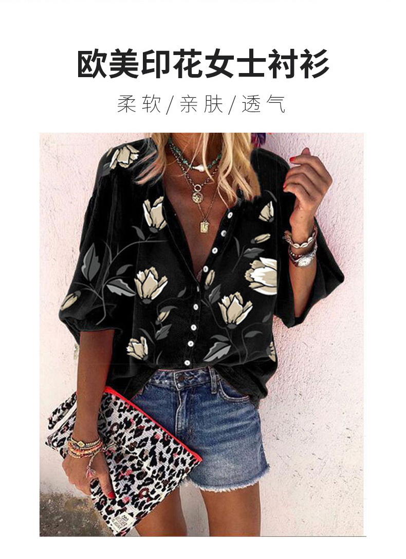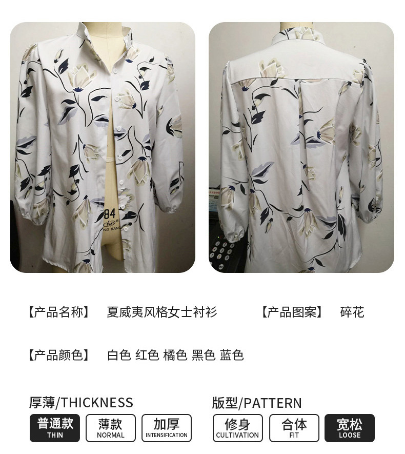 국경 여성 의류 2025 유럽과 미국의 인쇄 셔츠 탑 스탠드 칼라 느슨한 대형 여성 의류 대외 무역 캐주얼 셔츠 도매스토어 가기