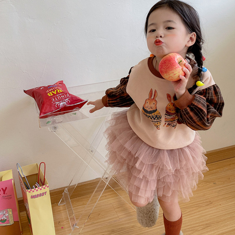 소녀의 치마 아동복 베일 스커트 투투 스커트 2024 6 색 메쉬 스커트 소녀의 푹신한 스커트 공주 스커트