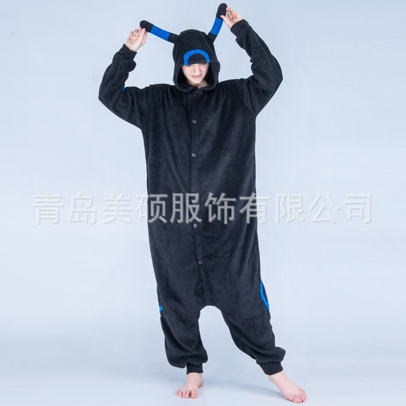 가을 겨울 만화 캐릭터 긴팔 폴라 플리스 잠옷 홈웨어 블랙 문엘프 남녀공용 따뜻한 홈웨어 캐주얼스토어 가기