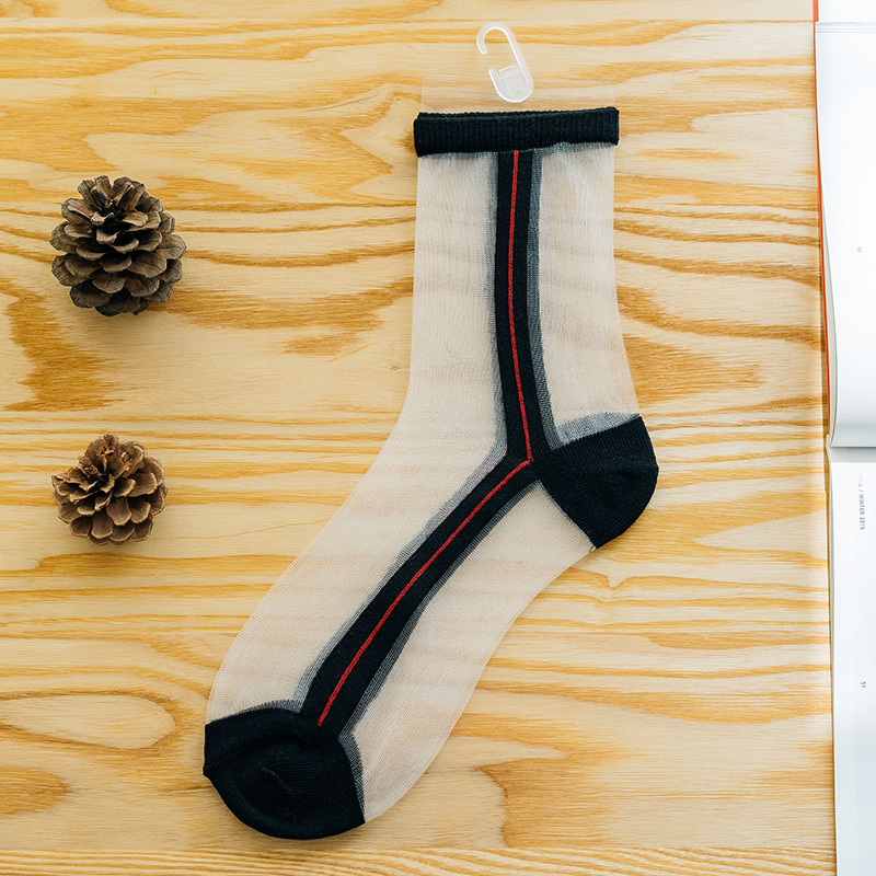 양말 여성용 유리 실크 튜브 양말 여름 얇은 일본 투명 줄무늬 크리스탈 양말 카드 스타킹 제조 업체 도매