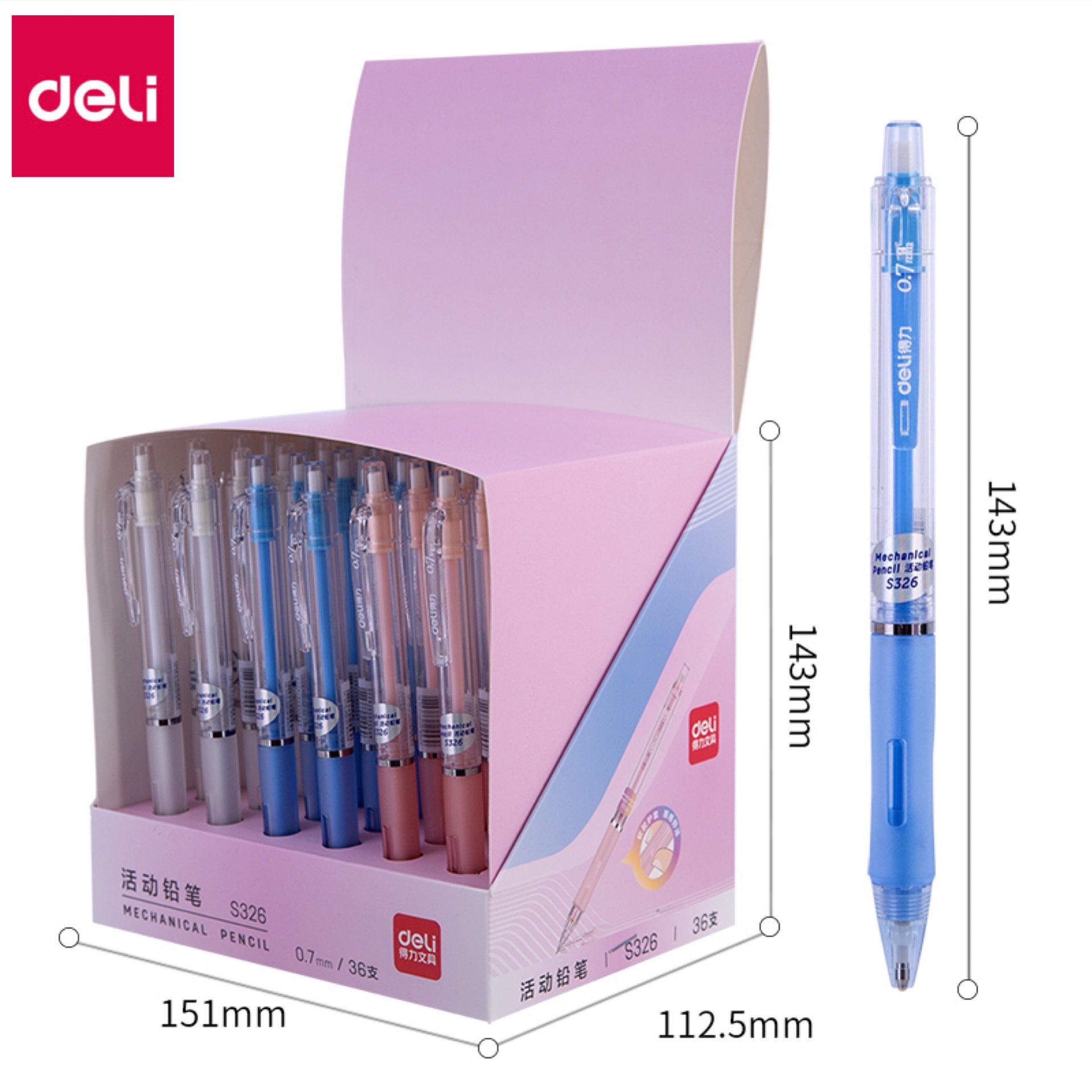 델리 S325/S326 플라스틱 활동 연필 학생 0.5/0.7mm 캔디 컬러 귀여운 간단한 기계 연필스토어 가기