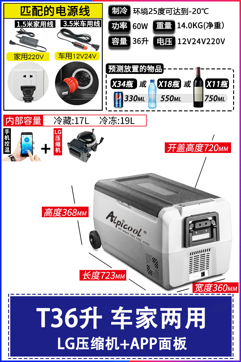• T36 리터 자동차 홈 듀얼 사용 LG 압축기 앱 패널