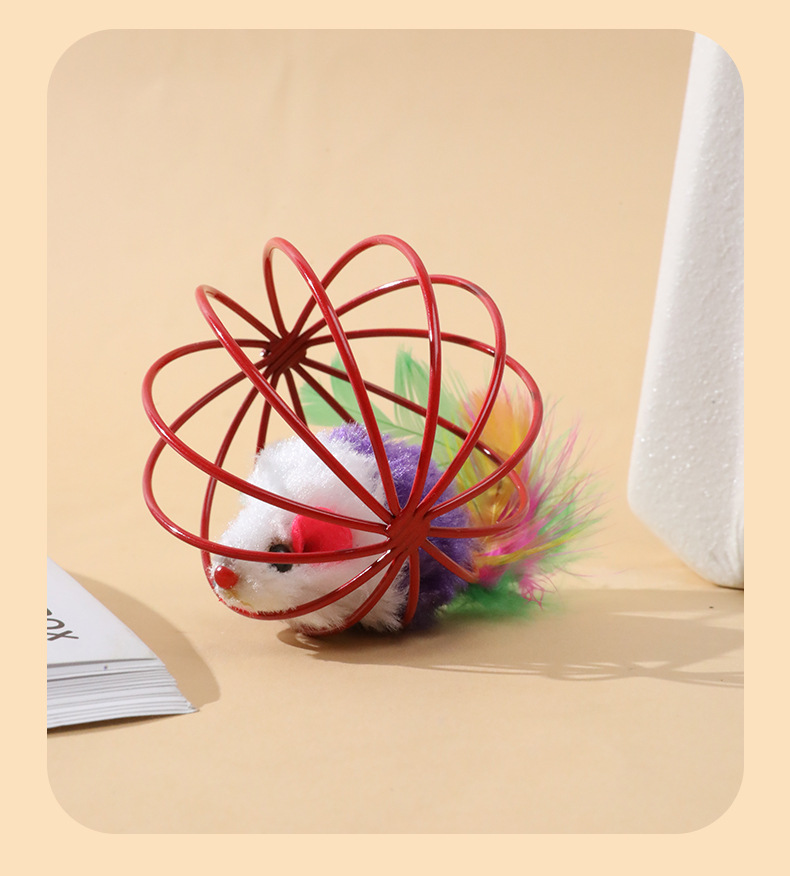 공장 직판 진짜 깃털 꼬리 케이지 속 쥐 장난감 고양이 스크래치 볼형 창의적인 고양이 장난감 애완동물 용품
