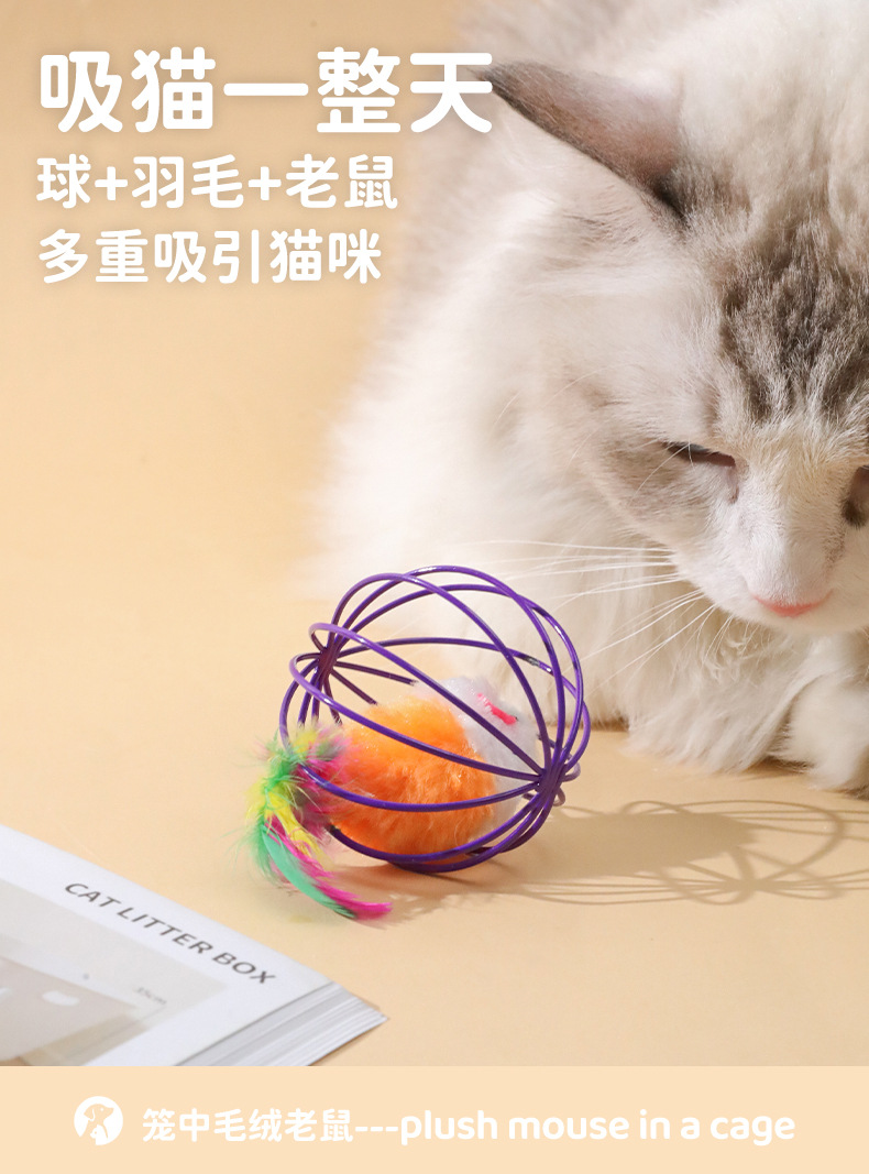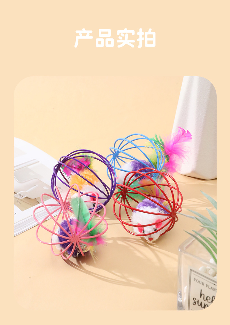 공장 직판 진짜 깃털 꼬리 케이지 속 쥐 장난감 고양이 스크래치 볼형 창의적인 고양이 장난감 애완동물 용품스토어 가기