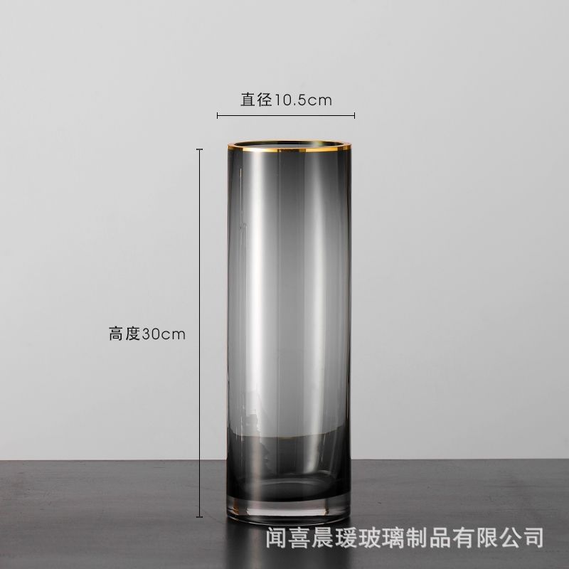 현대 심플 골드 그레이 스트레이트 유리 꽃병 거실 꽃꽂이 부드러운 장식 장식품 투명 수경 꽃 장치스토어 가기
