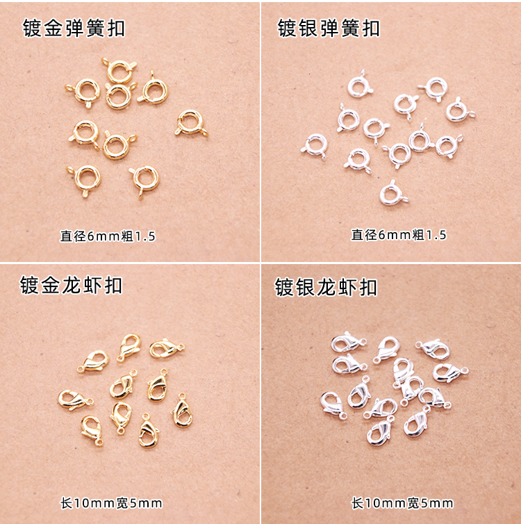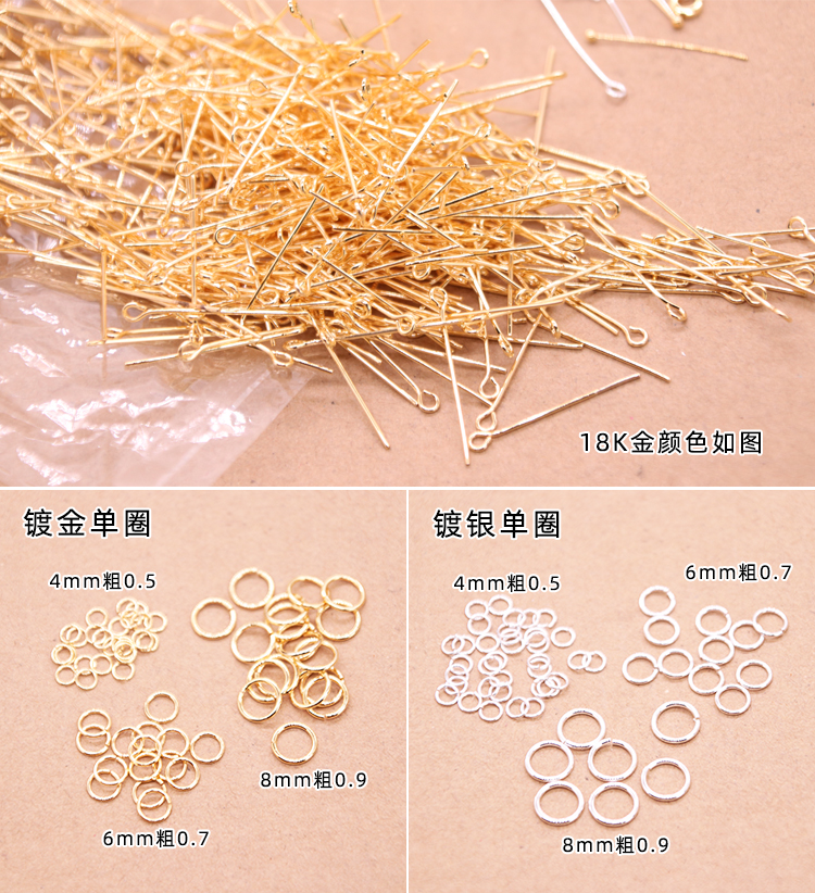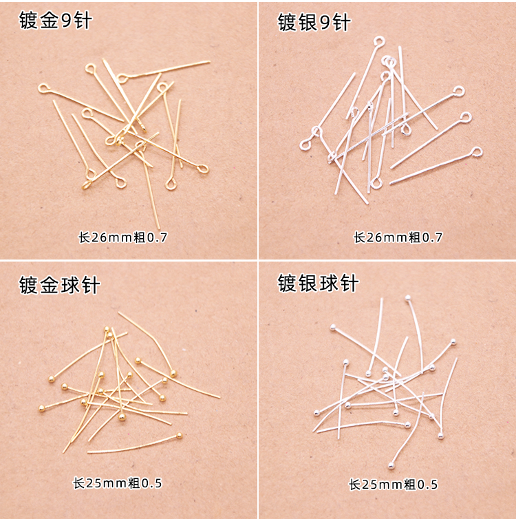 색상 유지 비 페이딩 구리 도금 18K 골드 및 실버 연결 액세서리 싱글 링 9 핀 라운드 헤드 T 볼 핀 스프링 버클 랍스터 버클스토어 가기