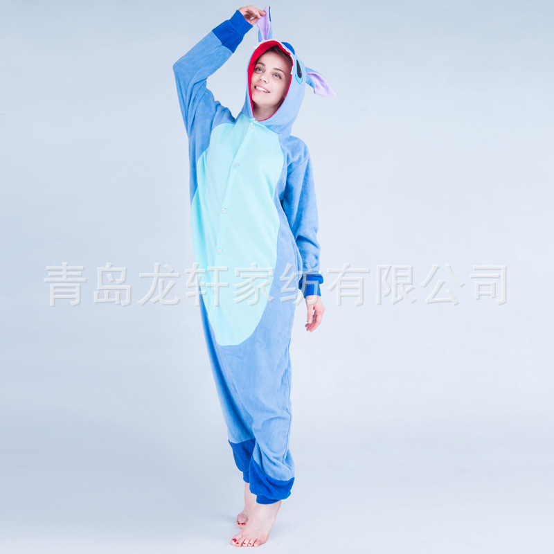 연례 회의 블루 패치 스티치 핑크 양털 만화 원피스 잠옷 동물 의상 도매스토어 가기