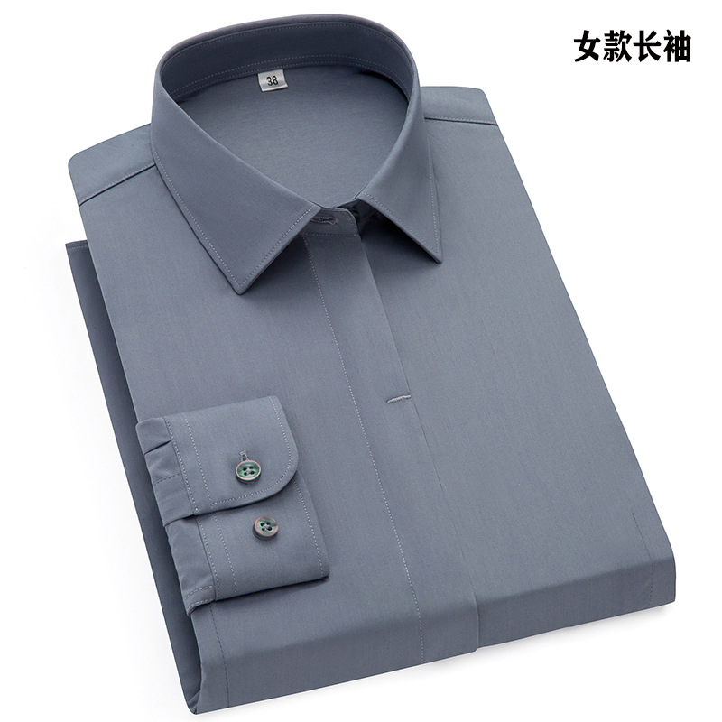 가을 신상 대나무 섬유 셔츠, 남성용 긴팔 셔츠, 단색, 신축성, 다림질 필요 없는 전문 작업복, 남성과 여성을 위한 동일한 스타일
