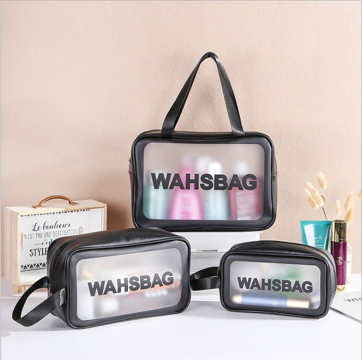 젖빛 PU 투명 화장품 가방 한국 여행 휴대용 세척 가방 도매 대용량 해변 보관 가방 방수