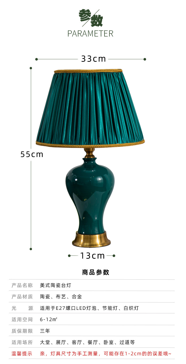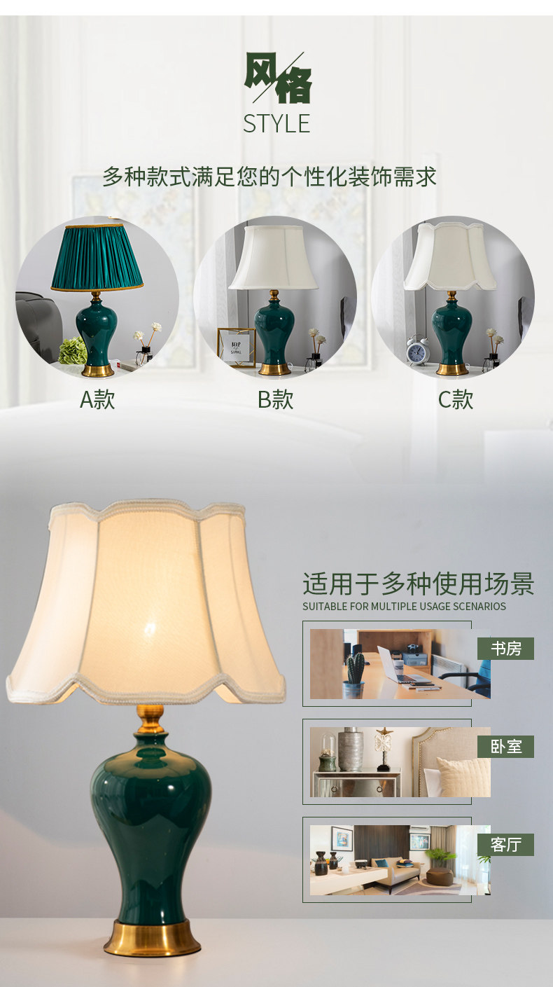 미국의 간단한 세라믹 테이블 램프 복고풍 거실 연구 홈 유럽 따뜻한 창조적 인 장식 침실 침대 옆 램프스토어 가기