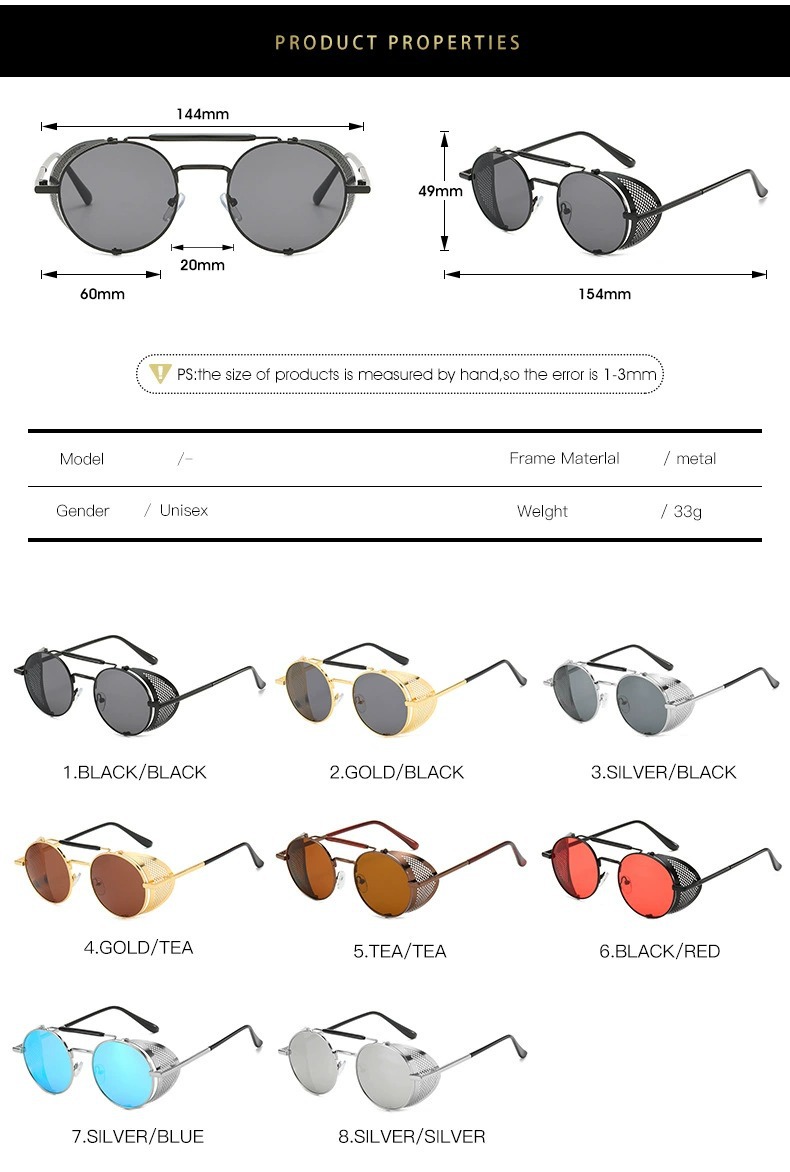 국경 간 클래식 스팀 펑크 윈드 스크린 선글라스 유럽과 미국 국경 새로운 선글라스 라운드 레트로 패션 태양