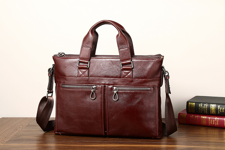 클래식 남성용 가죽 서류 가방 비즈니스 캐주얼 레트로 노트북 가방 탑 레이어 야채 태닝 된 Cowhide 다기능 가방스토어 가기