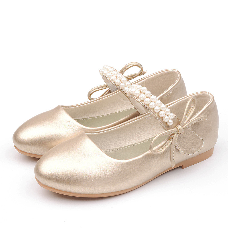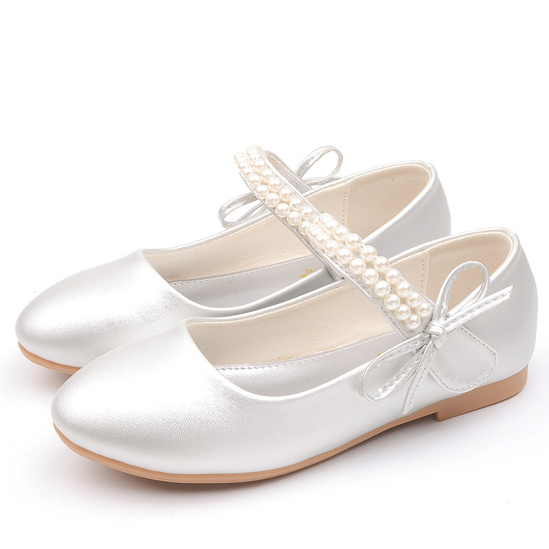 봄과 가을 새로운 소녀 흰색 가죽 신발 어린이 플랫 화이트 신발 소녀 꽃 소녀 교복 사진 원피스 신발 진주