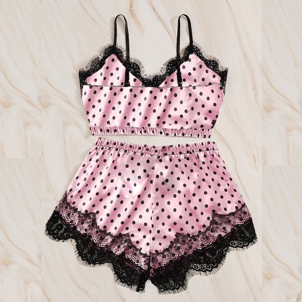 여름 얼음 실크 잠옷 여자의 레이스 섹시한 슬링 세트 잠옷 귀여운 유럽과 미국 대외 무역 실크 가정 옷스토어 가기