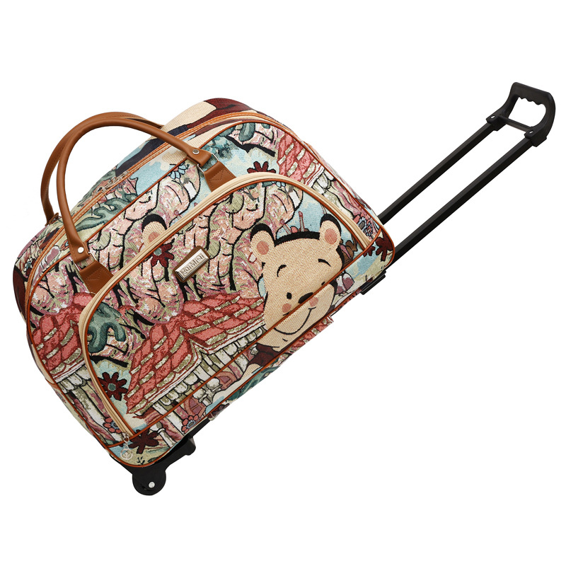 대용량 트롤리 가방 방수 PU 가죽 여행 가방 단거리 여행 가방 수하물 가방 만화 탑승 가방