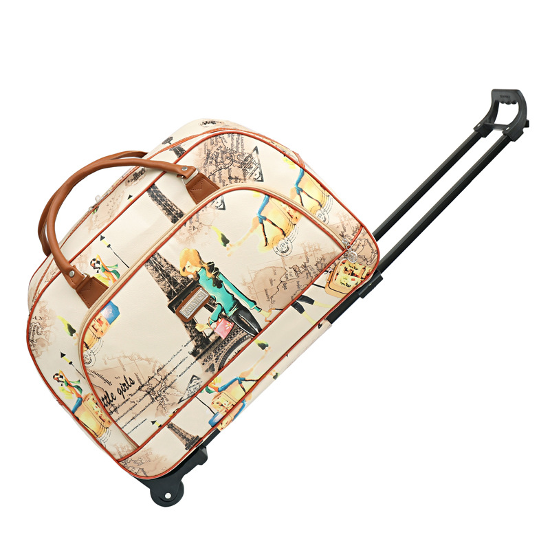 대용량 트롤리 가방 방수 PU 가죽 여행 가방 단거리 여행 가방 수하물 가방 만화 탑승 가방스토어 가기