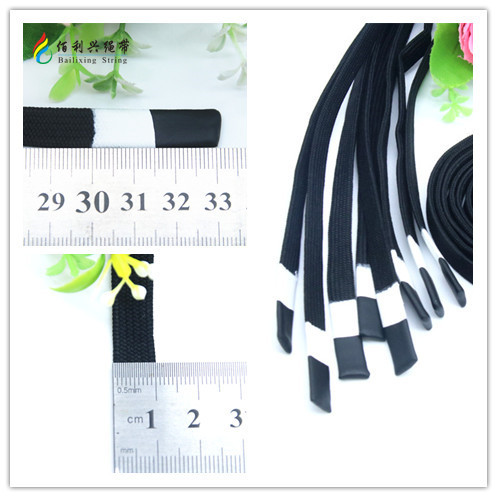 135cm 검은 색 폴리 에스테르 바지 로프 모자 로프 흑백 실리콘 헤드 디핑 헤드 핸드 플랫 로프 스웨터 드로우 스트링