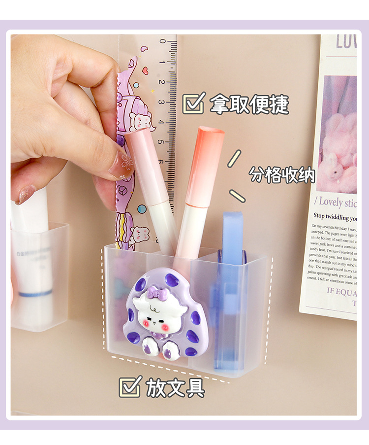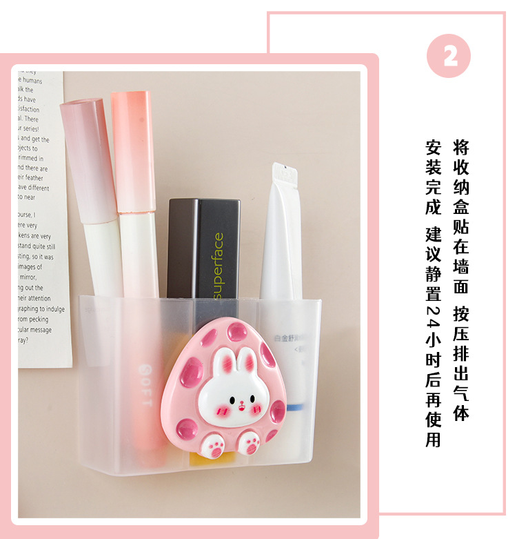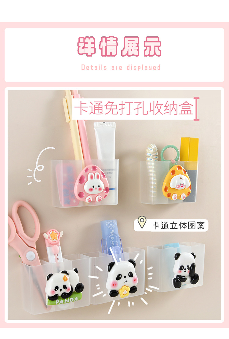 귀여운 만화 비 펀치 벽 장착 상자 작은 품목 저장 상자 문구 적합 상자 립스틱 브러시 보관 랙