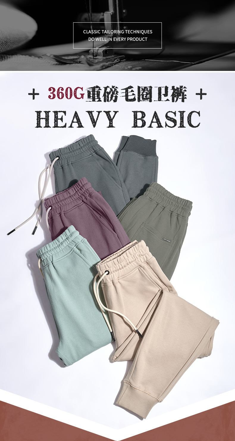 무거운 순면 유럽과 미국 패션 브랜드 미국 스타일 복고풍 일본 스타일 스포츠 다리 남성용 작은 발 목 졸라매는 끈 캐주얼 스웨터 바지