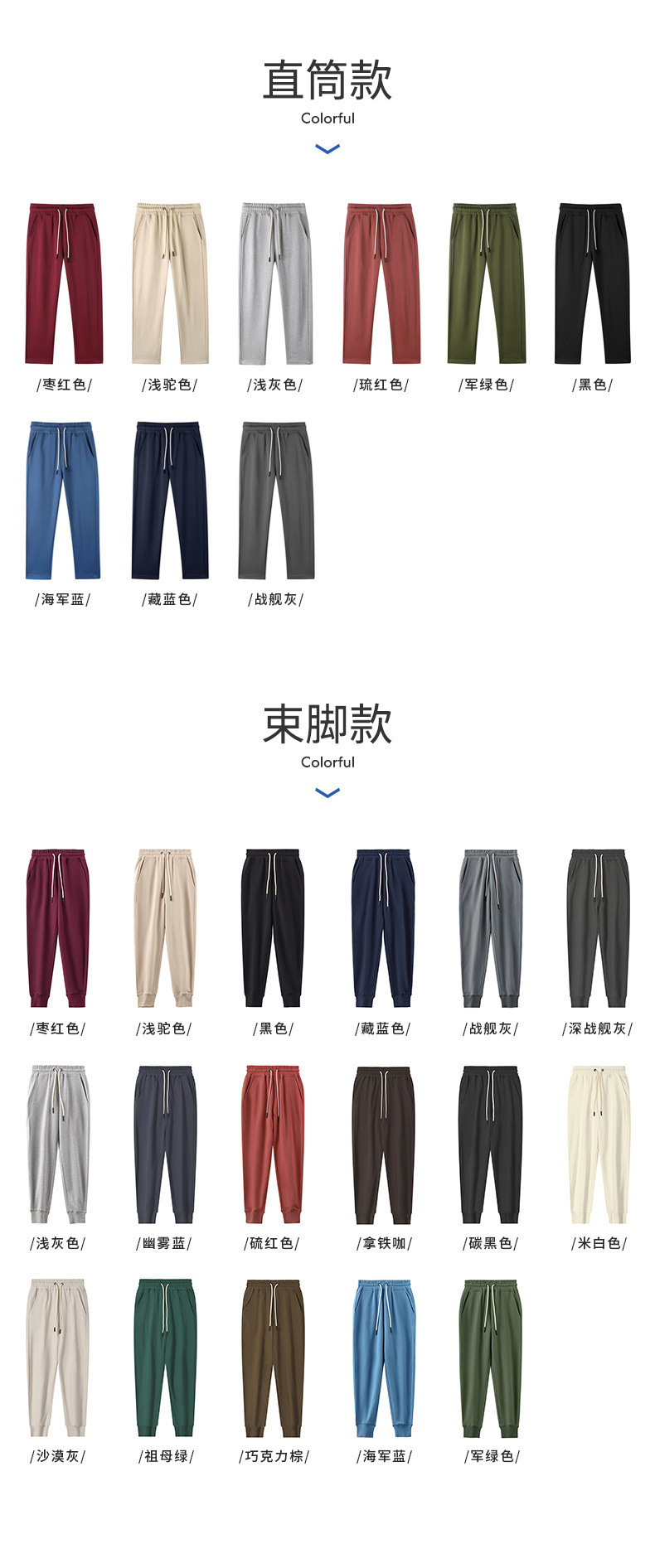 무거운 순면 유럽과 미국 패션 브랜드 미국 스타일 복고풍 일본 스타일 스포츠 다리 남성용 작은 발 목 졸라매는 끈 캐주얼 스웨터 바지스토어 가기